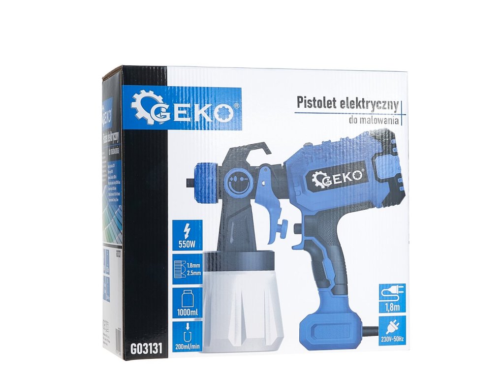 Technické údaje Napájacie napätie: 230 V Príkon: 400 W Objem nádrže: 800 ml Maximálna viskozita farby: 80 DIN-Sec Spotreba farby: do 300 ml/min Rýchlosť maľovania: 15 m2 za 10 minút Trysky v sade: 1,8 m