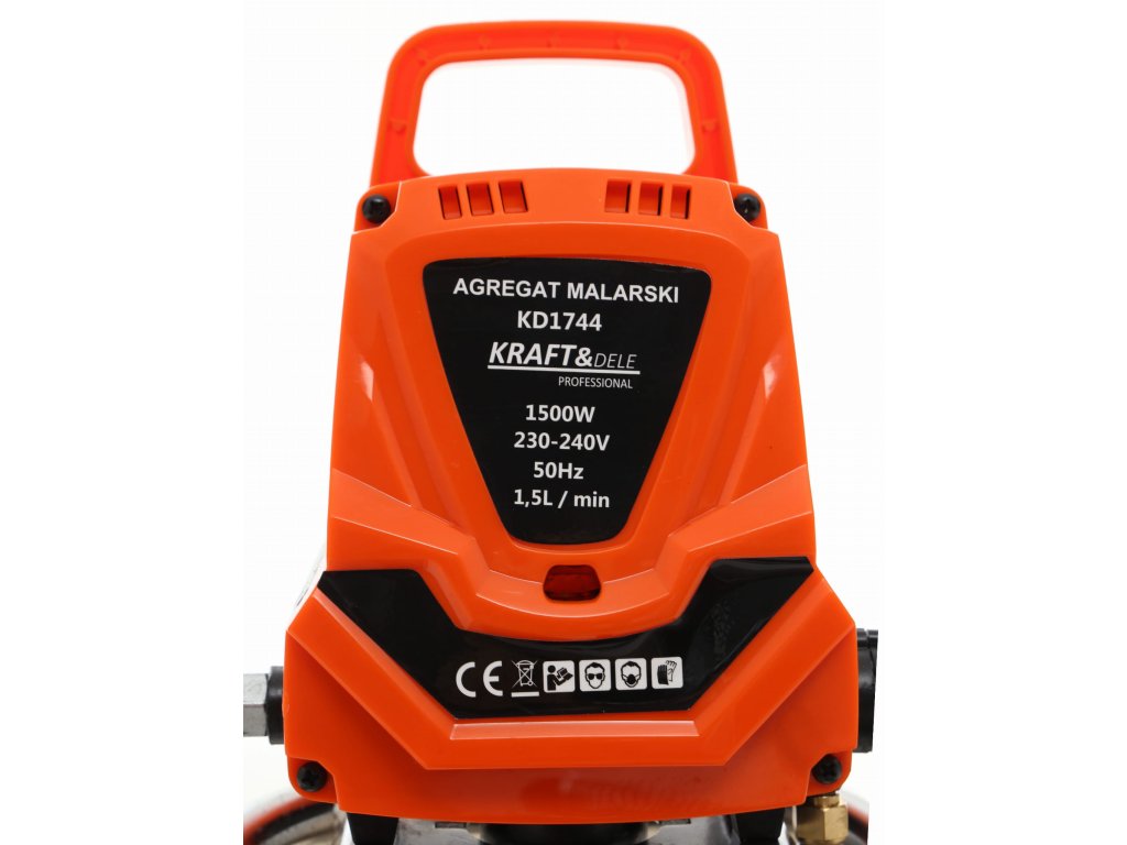 - TECHNICKÝ VÝROBOK Značka: KRAFT&DELE Model: KD1744 Výkon: Do 1,5 l/min Zdroj energie: 1500 W univerzálny motor Požiadavky na generátor: 8000 W Maximálna viskozita média: 110DIN-s Maximálna veľkosť trysky: 0,019" (0,48 mm) Maximálny pracovný tlak: 220 bar