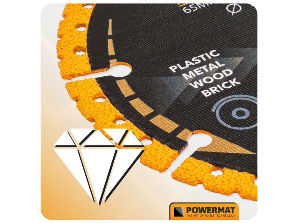 Diamantový univerzálny kotúčPOWERMAT PM-TDCS-1252T je určený na širokú škálu rezných aplikácií v rôznych materiáloch - od kovov a dreva cez plasty a keramiku až po betón, tehly alebo kameň. Vďaka svojej všestrannosti vám stačí jeden nôž tam, kde by ste inak potrebovali niekoľko rôznych nástrojov.