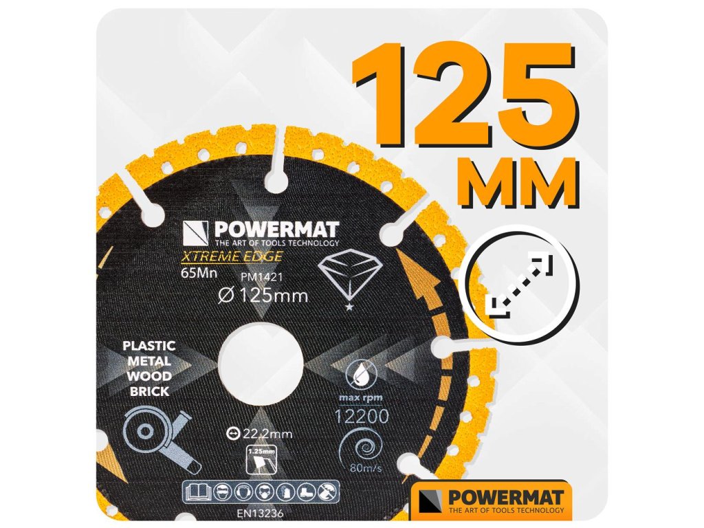 Univerzálny diamantový rezný kotúč POWERMAT PM-TDCS-1252T 125 mm - na širokú škálu materiálov