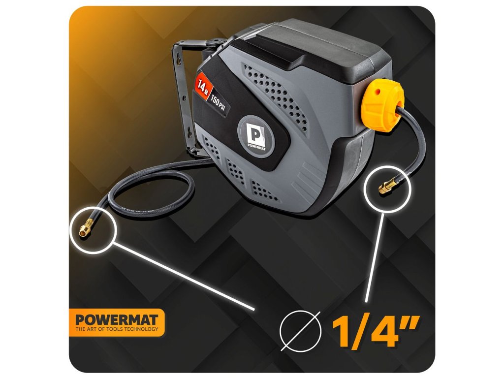 Automatický navíjací bubon PowerMat je ideálnym príslušenstvom pre kompresor. Do vašej práce vnáša poriadok, bezpečnosť a efektivitu. Vďaka dlhej hadici, automatickému navíjaniu a pevnej konštrukcii je jedným z najpraktickejších riešení na hobby a profesionálne použitie.