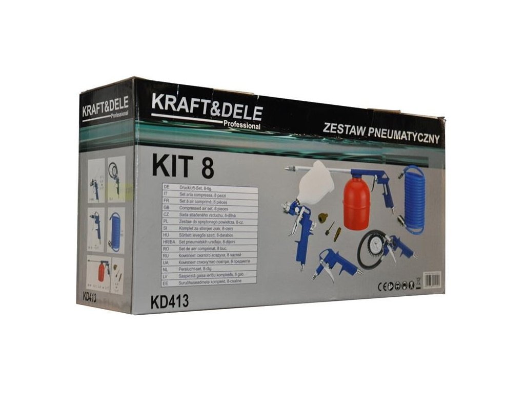 S našouPneumatická súprava 8 kusov KD413každá práca sa stáva zábavou! Táto súprava je ideálna pre každého, kto v dielni ocení kvalitné náradie. Obsahuje: