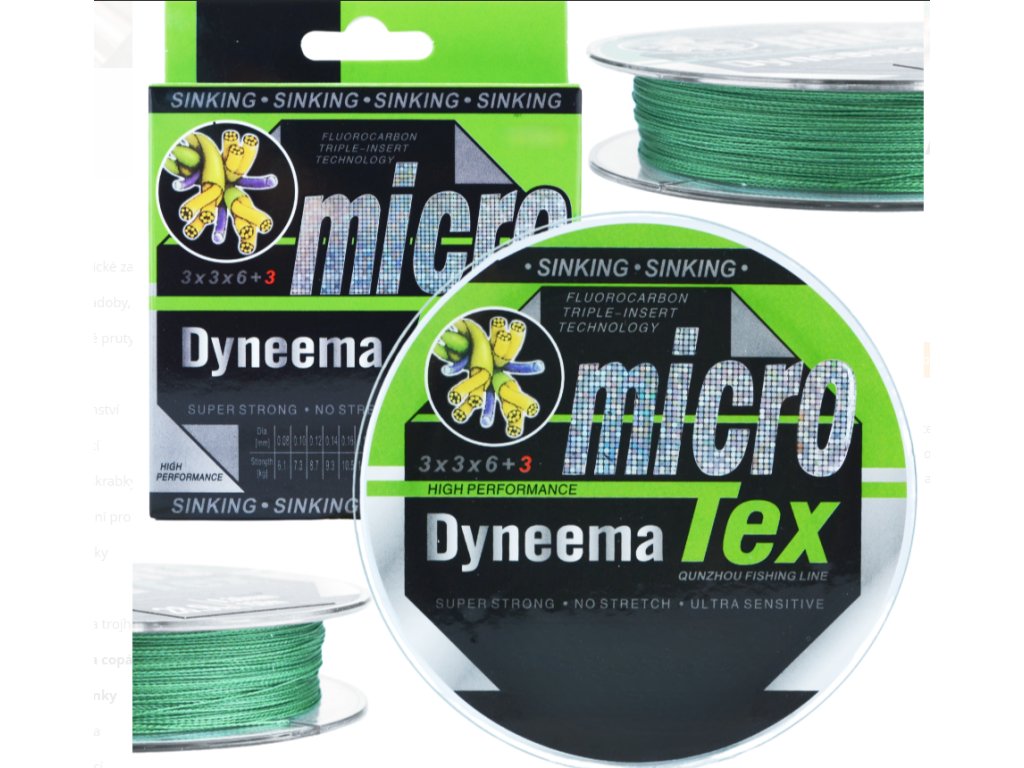 Pletené z mikrovlákien Dyneema - vynikajúca nosnosť s minimálnym priemerom 0,12 mm.