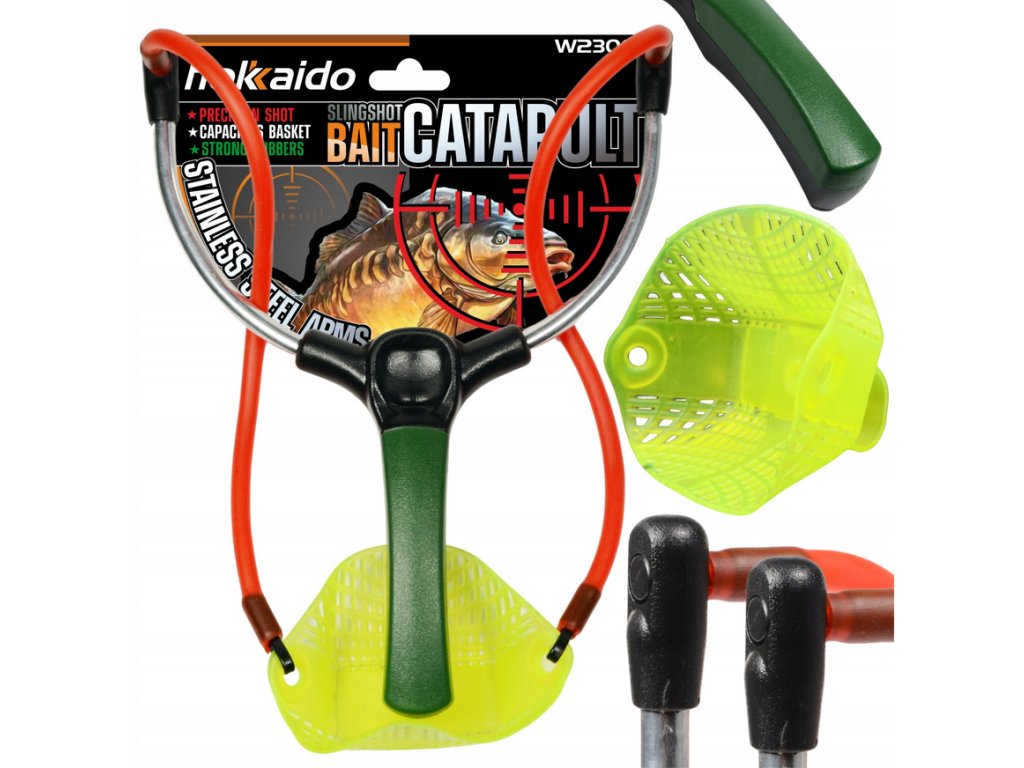 - 🏹 Hokkaido profi rybársky prak (katapult) - robustný prak s kovovými ramenami na presné a diaľkové vystreľovanie krmiva alebo návnady