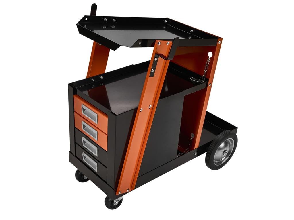 - Pohodlne prenáša zváracie zariadenia a organizuje nástroje v zásuvkách