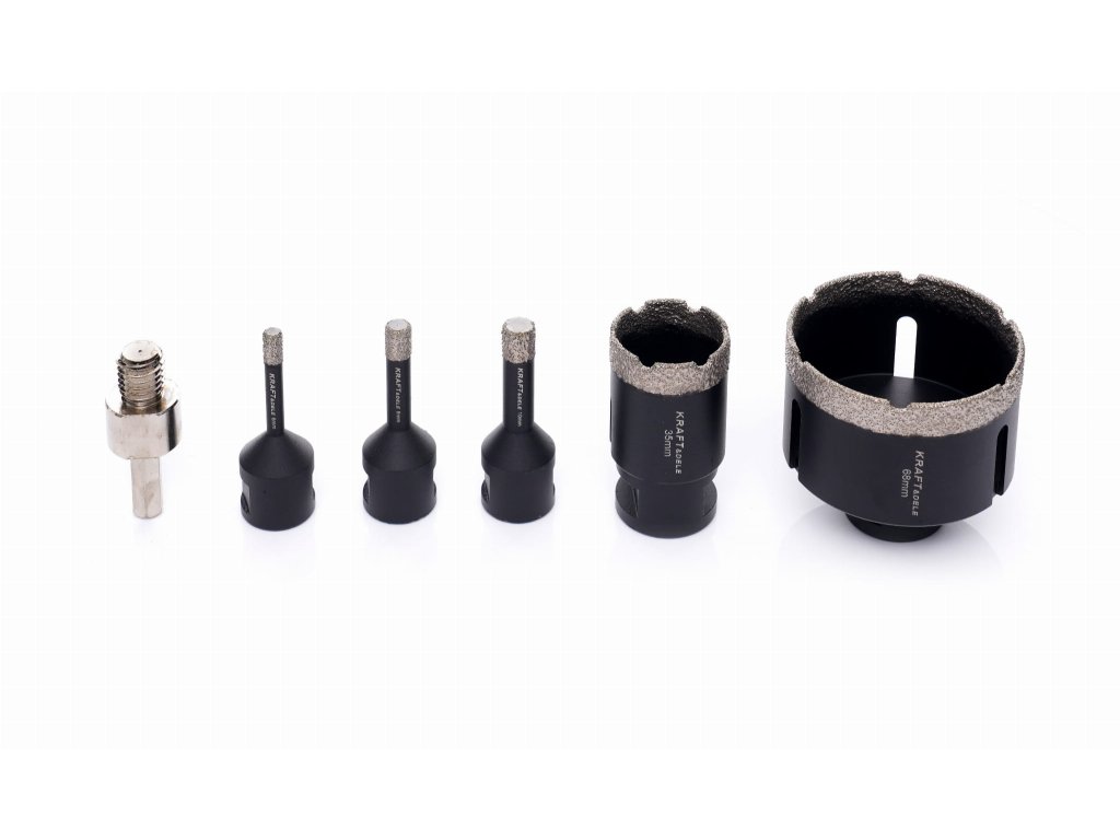 Sada diamantových dierovačov odKraft&Dele je skvelý nástroj na pohodlné vŕtanie do tvrdých materiálov.Bezpečné a presné vŕtanie zabezpečuje jemný diamantový prášok. V balení nájdete dierovače s priemermi: