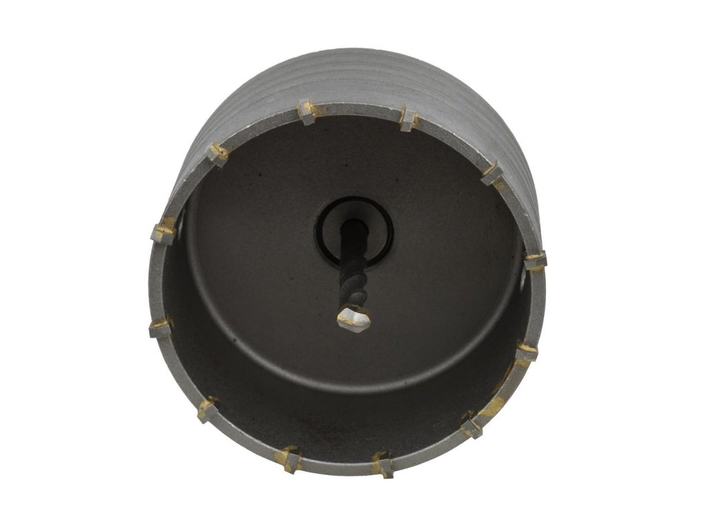 Vŕtačka/vrtacia korunka vyrobené z vysokokvalitných materiálov.Veniec zubov vrtáka je vyrobený z karbidov. Vŕtacia korunka máadaptér, ktorý umožňuje jeho použitie vo vŕtačkách vybavených držiakom SDS Plus. Okrem toho má ajvodiaci vrtákktorý umožňuje vytvoriť presný otvor.