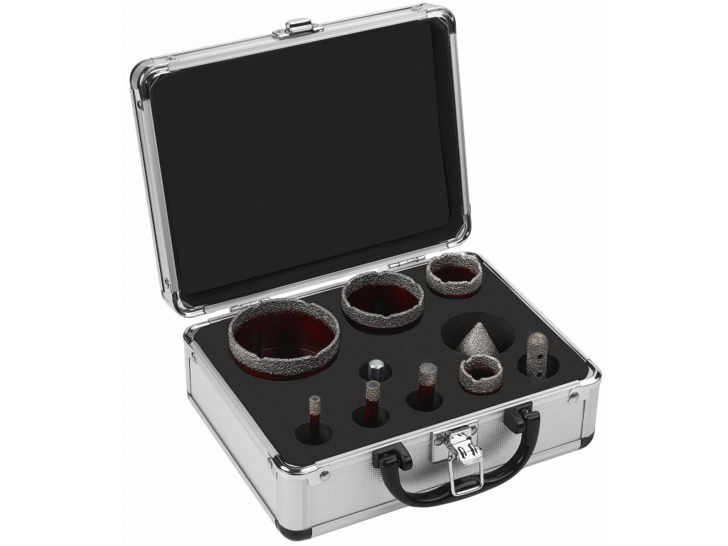 - Obsahuje 8 diamantových vrtákov s priemerom od 6 do 65 mm