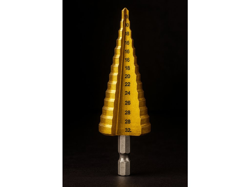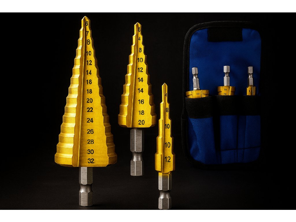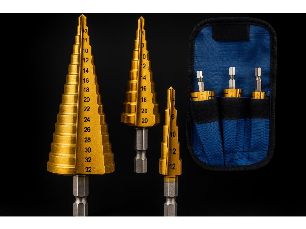 Sada titánových stupňovitých vrtákov 4-32 mm (3 ks, HEX)