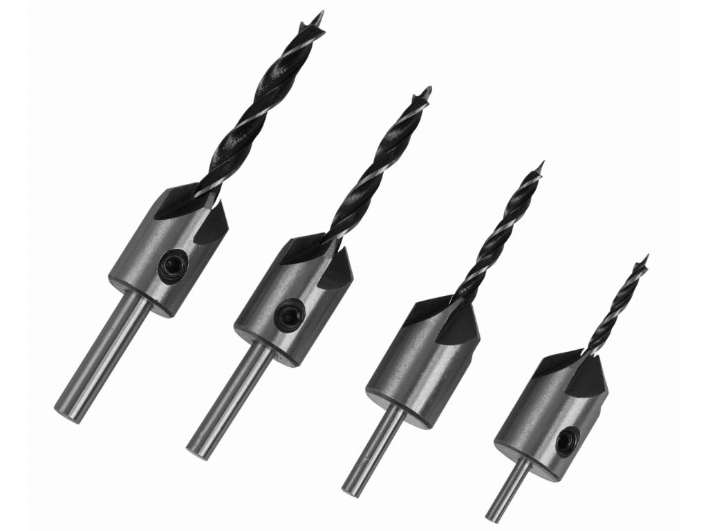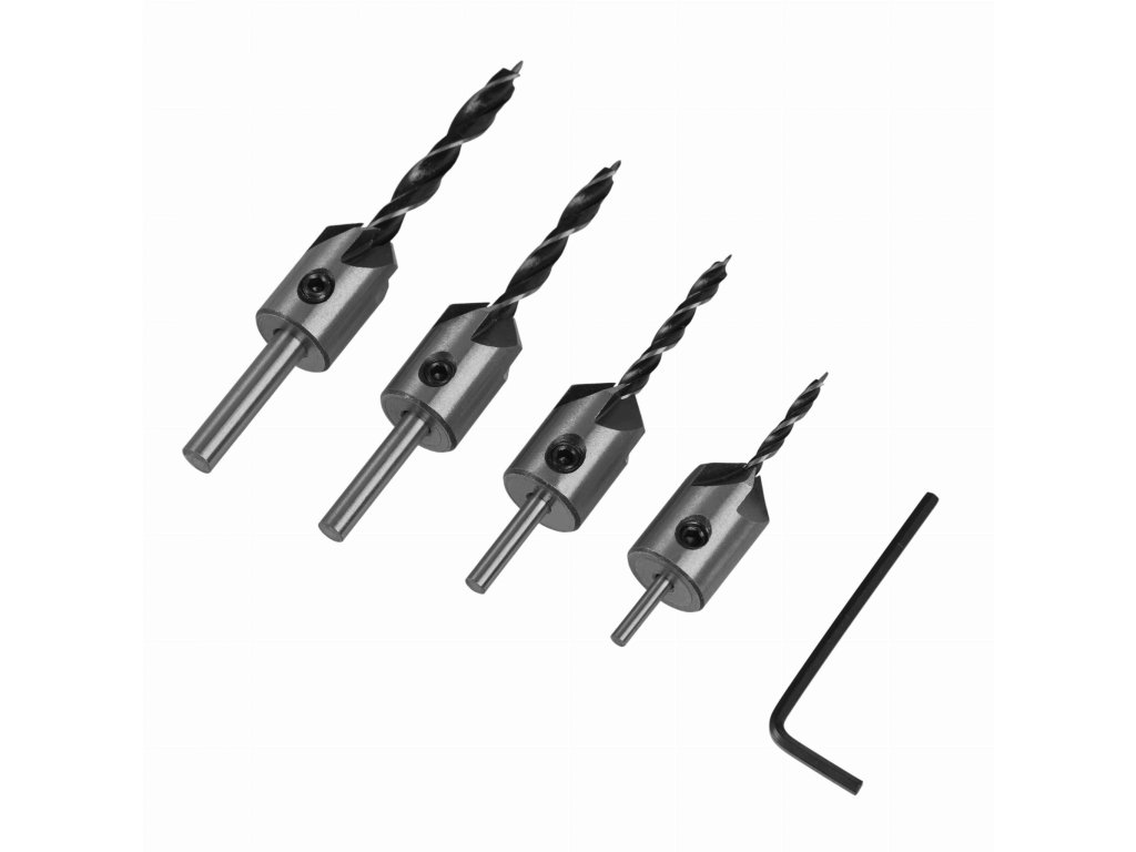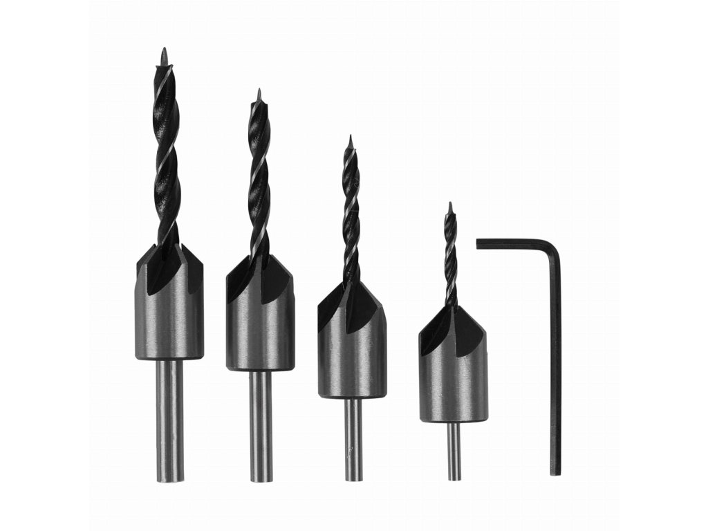 - 4 vrtáky so záhlbníkom vo veľkostiach: 3 mm x 60 mm, 4 mm x 75 mm, 5 mm x 85 mm, 6 mm x 93 mm