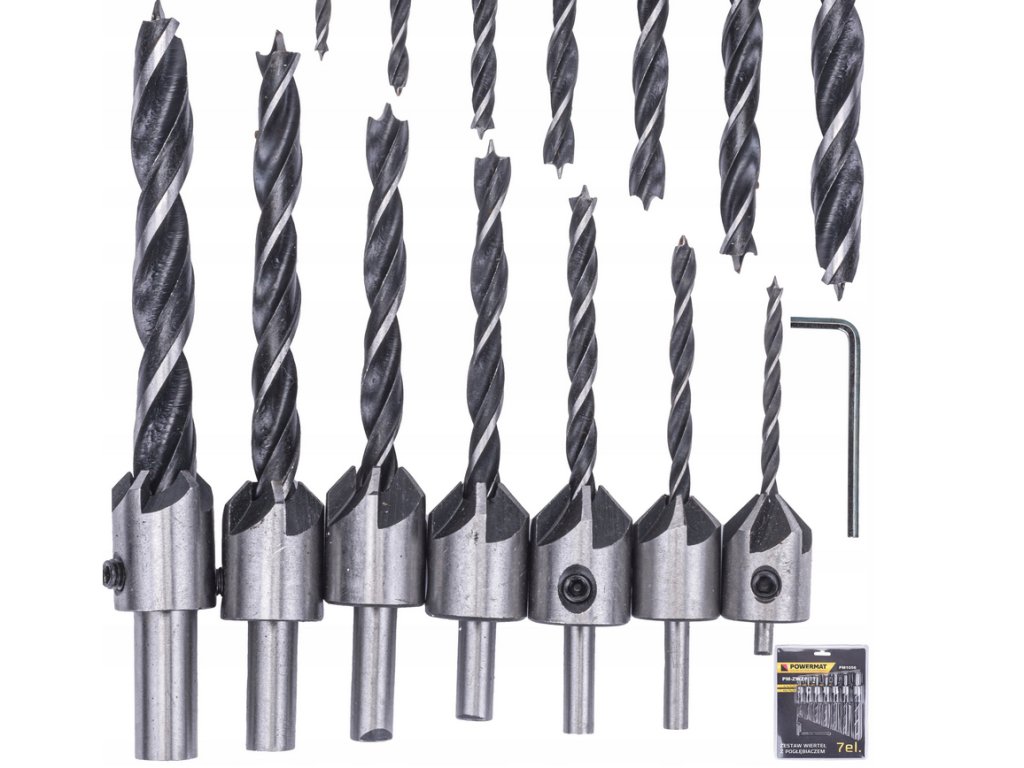 Vrtáky do dreva so záhlbníkmi 7ks PM1056