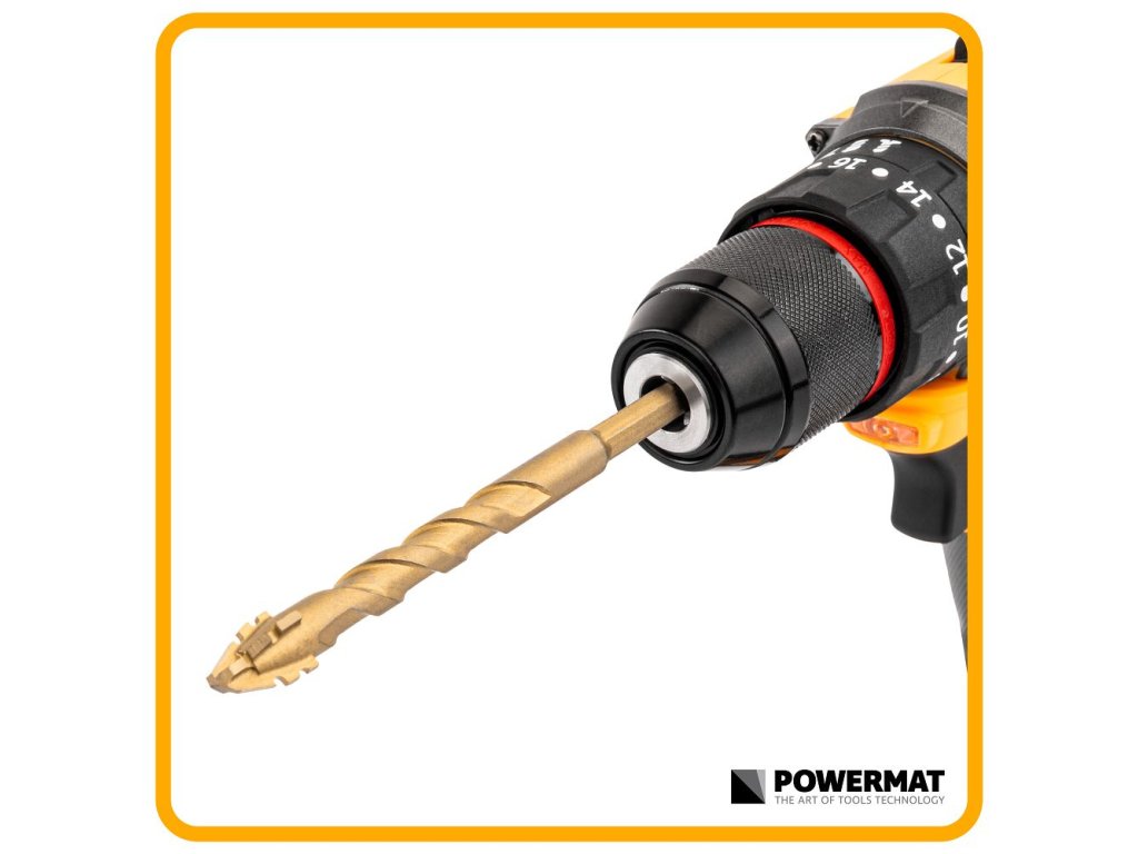 Súprava PowermatPM-ZWSC-7T obsahuje7× mimoosový (excentrický) štvorhranný vrták na presné vŕtaniebez klepania nasklo, keramika, porcelán adlaždice (gres). Konštrukcia so štyrmi hranami pomáha stabilne viesť vrták, znižuje sklz povrchu a dosahuje čistejšie otvory. Šesťhranná stopkaHEX 1/4" pevne drží v svorke a odporúča sa pre tvrdé materiálychladenie vodou.