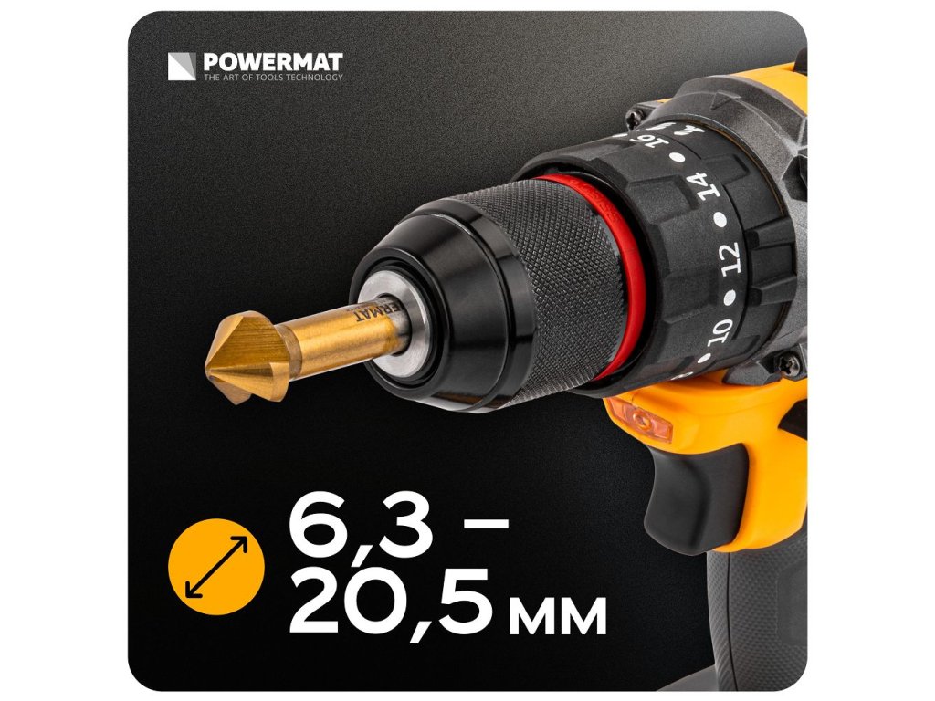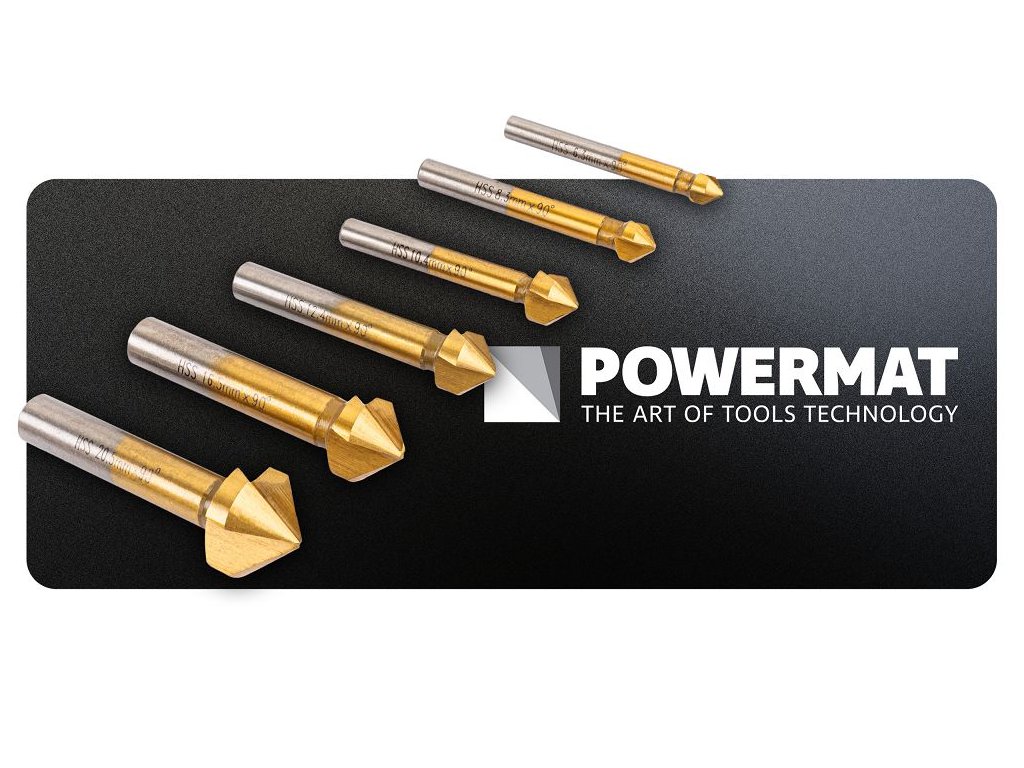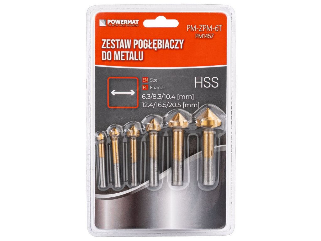Súprava PowermatPM-ZPM-6T je určená pre zrážanie (skosenie hrán), zahlbovanie a odihlovanie otvory - zvyčajne na čisté sedenieskrutky so zápustnou hlavou a pekná povrchová úprava hrán bez otrepov. Viacero priemerov v jednom balení uľahčuje výber správnej veľkosti pre konkrétnu skrutku a materiál.