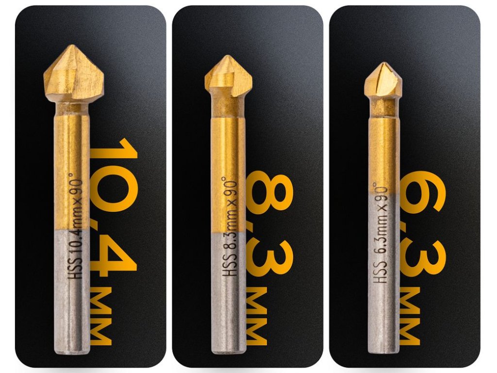 - Typ nástroja: kužeľové úkosníky / kužeľové záhlbníky