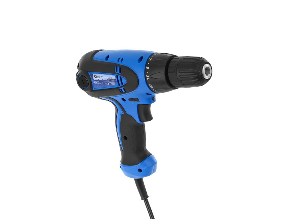 Vďaka regulácii otáčok zaručuje vŕtačka plynulý rozbeh a dokonalú kontrolu pri vŕtaní alebo skrutkovaní. Má prepínač smeru otáčania (vpravo/vľavo) a poistku spúšte.