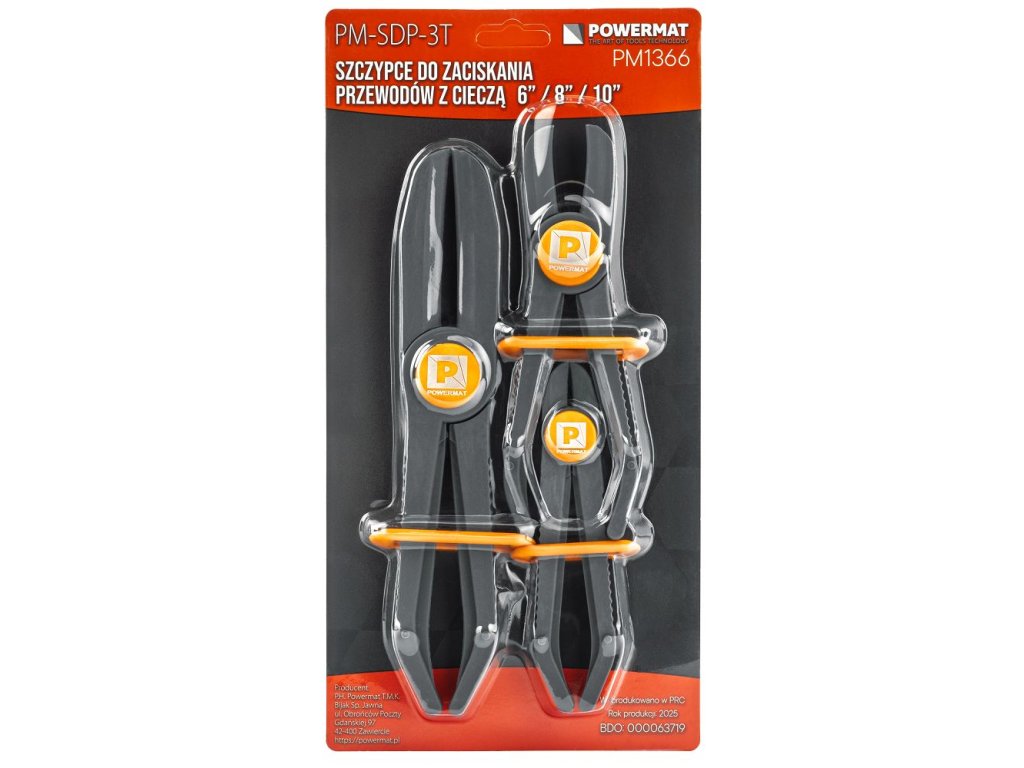 Sada klieští POWERMAT PM-SDP-3T je praktický servisný nástroj na bezpečné uzatváranie a blokovanie kvapalín v hadiciach počas opráv a údržby. Obsahuje tri veľkosti klieští pre rôzne priemery hadíc - ideálne pre brzdové, palivové, chladiace a vodné systémy.
