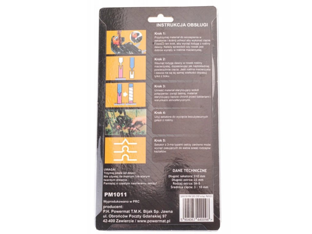 - Komfort práce zabezpečuje dvojica veľmi ostrých nožov + špeciálne pripravené štepárske formy.