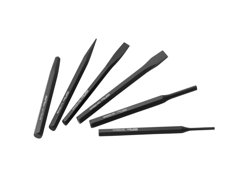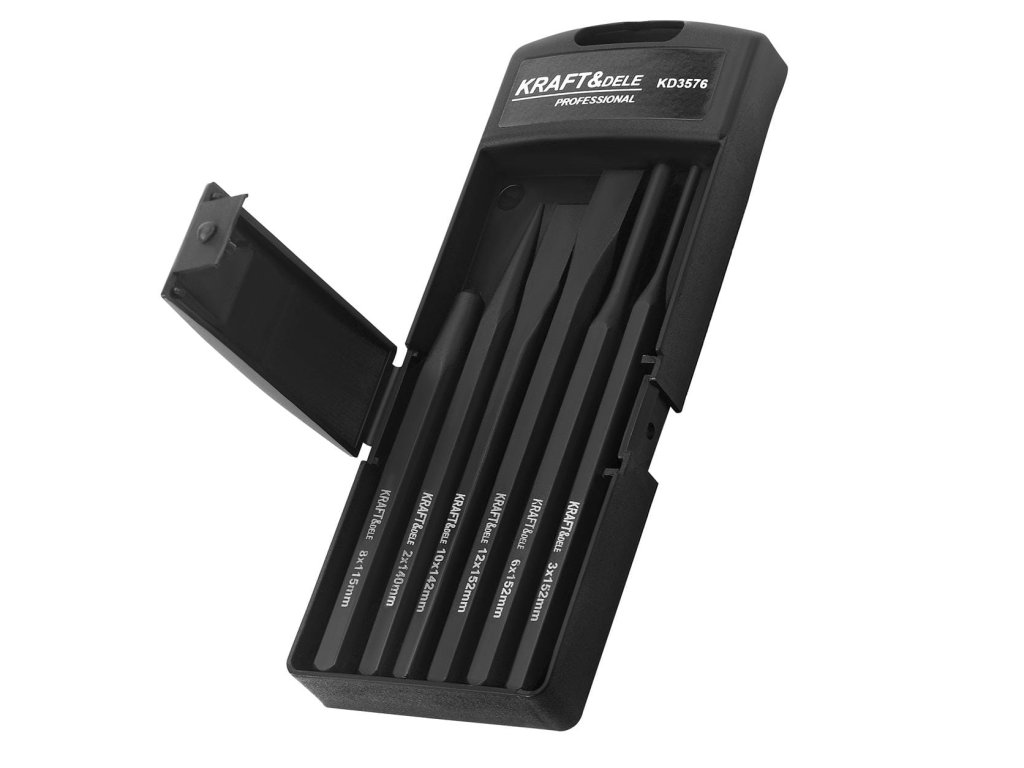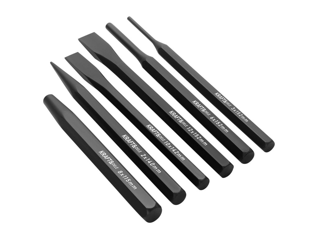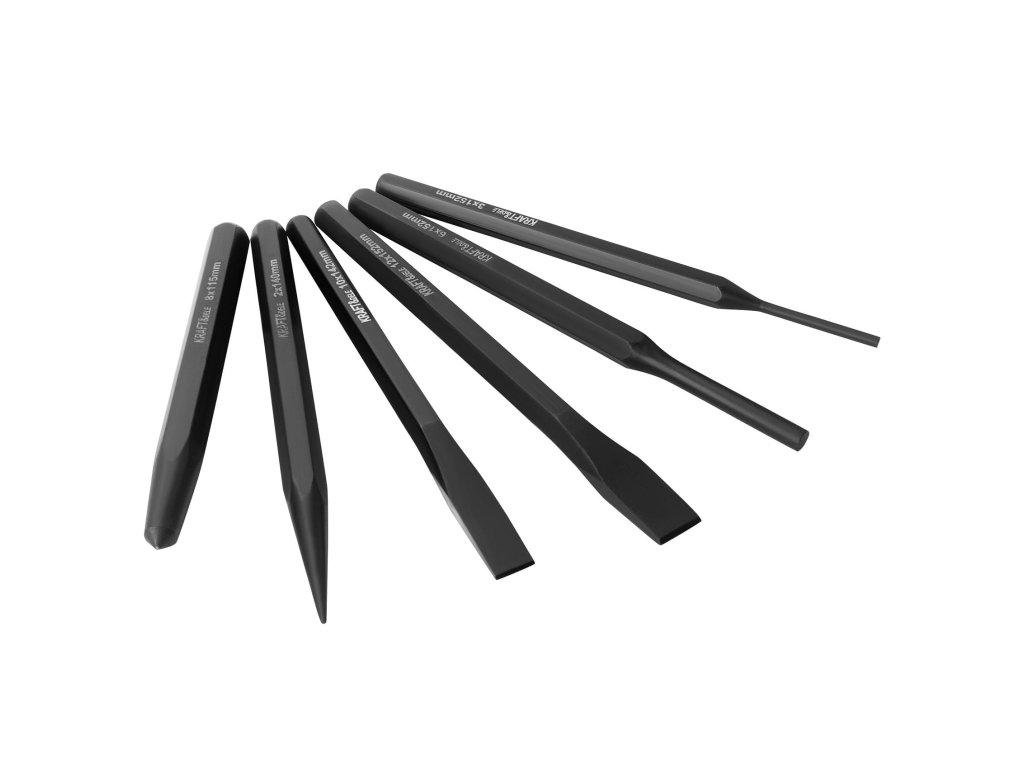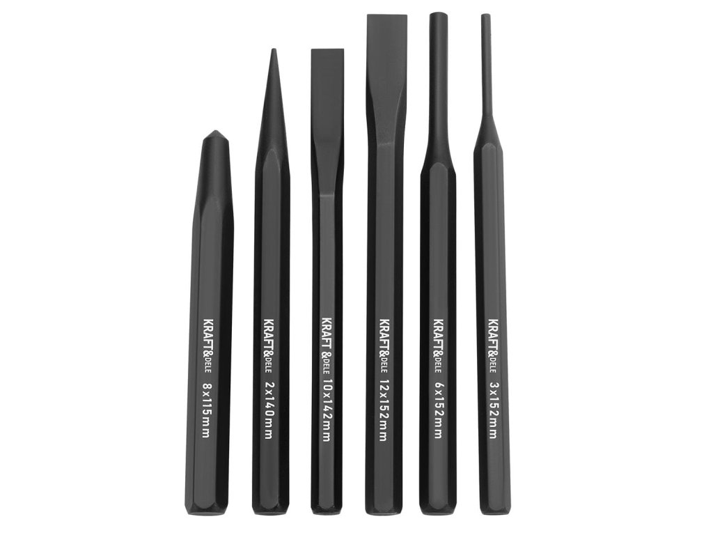 - Kompletná súprava 6 nástrojov: obsahuje hmoždinkovač, dierovače a dláta pre dokonalú presnosť.
