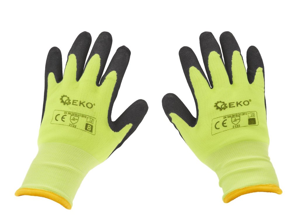 Ochranné rukavice Geko sú vyrobené z polyesteru potiahnutého latexom s podšívkou z akrylových vlákien a poskytujú vynikajúcu ochranu pred chladom pri práci v teréne a na stavbách.