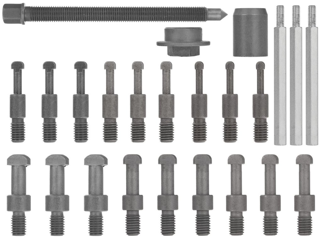 - Všestrannosť: Súprava je určená na vyťahovanie guľôčkových ložísk, ihlových ložísk a iné práce, ktoré si vyžadujú vnútorný sťahovák.