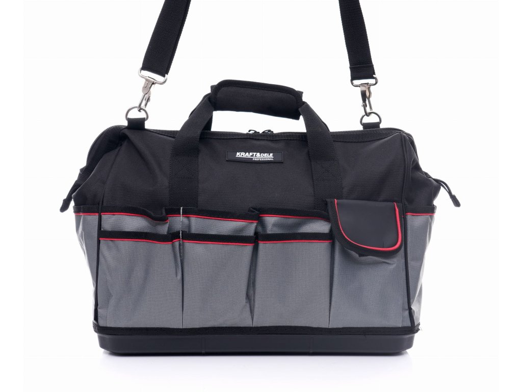 Ak hľadáte spoľahlivého pomocníka v práci,TAŠKA NA NÁRADIE 18" KD2043 je práve pre vás! Obsahuješiroký ramenný popruh na pohodlné nosenie a množstvo vreciek, ktoré zaručujú dokonalú organizáciu náradia. Taška je vyrobená zodolný materiál s pevnými švami, ktoré mu dodávajúdlhú životnosť. Pamätajte: všetko, čo potrebujete, je vždy po ruke!