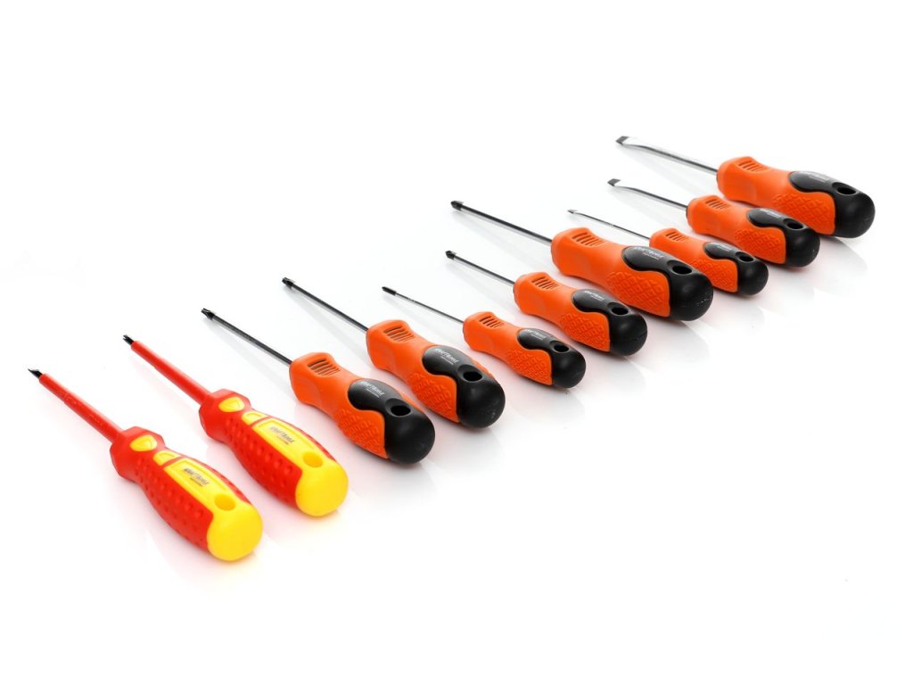 - 2 izolované skrutkovače - bezpečnosť zaručená do 1000 V (1 plochý a 1 krížový)