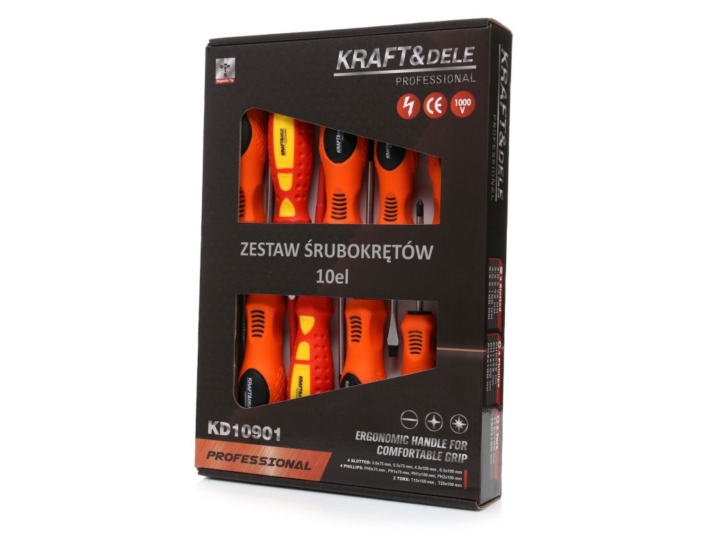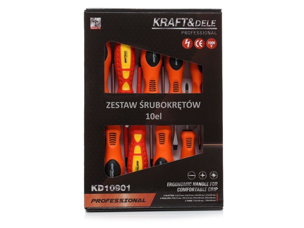 Ak hľadátespoľahlivú sadu skrutkovačovpráve ste ho našli! Táto stránkasada 10 ks od spoločnosti Kraft&Dele je nevyhnutným príslušenstvom pre každého majstra. V súprave nájdete:2 izolované skrutkovače do 1000 V,4 byt,4 kríž a2 skrutkovače TORX.Ideálne na opravy a profesionálne projekty. Vyberte si kvalitu a posuňte svoje schopnosti ďalej!