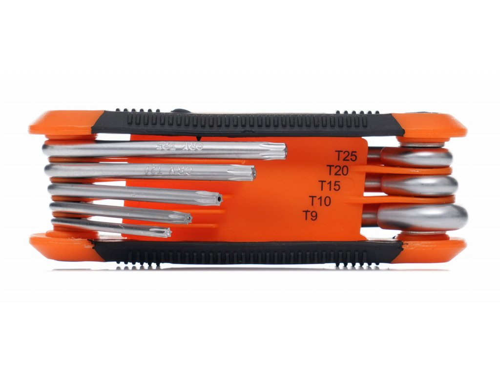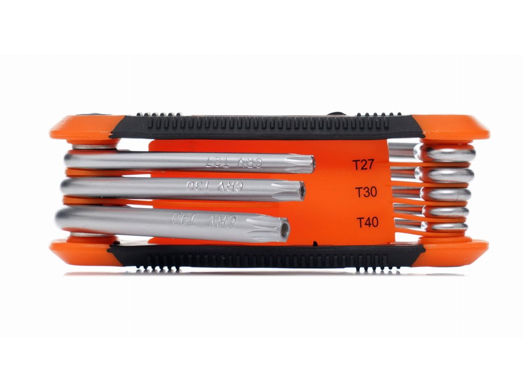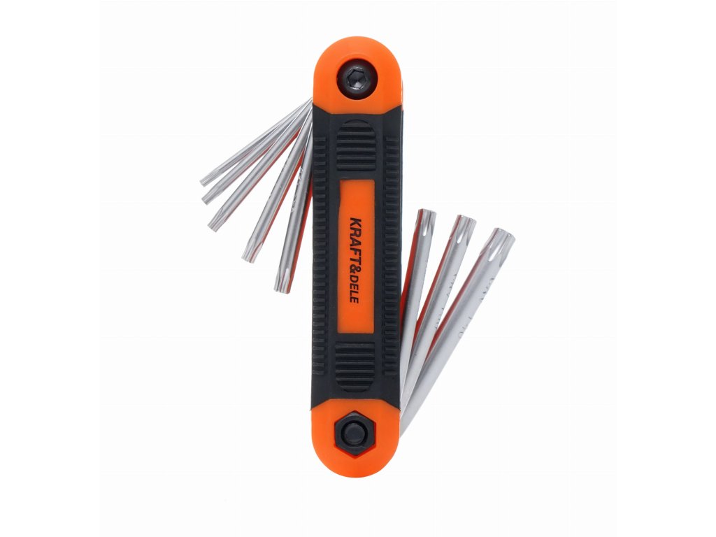 Ak hľadáte sadu kľúčov, ktorá jeskladná,odolná a pripravený na všetko, je tu 8EL STORAGE KEYS. KD11935. Vďakaku kompaktu dizajn sa zmestí kamkoľvek - do vrecka alebo tašky.CRV oceľ zaručuje dlhú životnosť, pričomgumová rukoväť ponúka pohodlné uchopenie. Už žiadne barličky, T9 až T40 máte vždy po ruke.