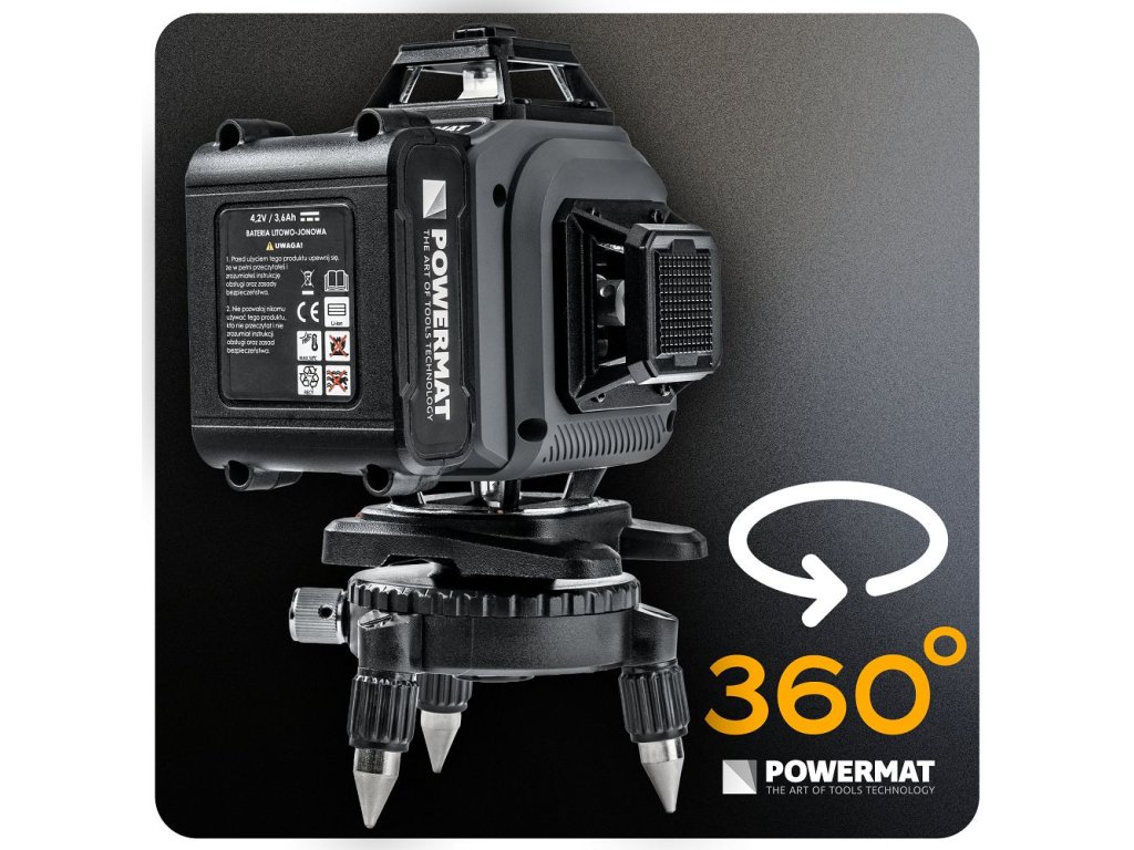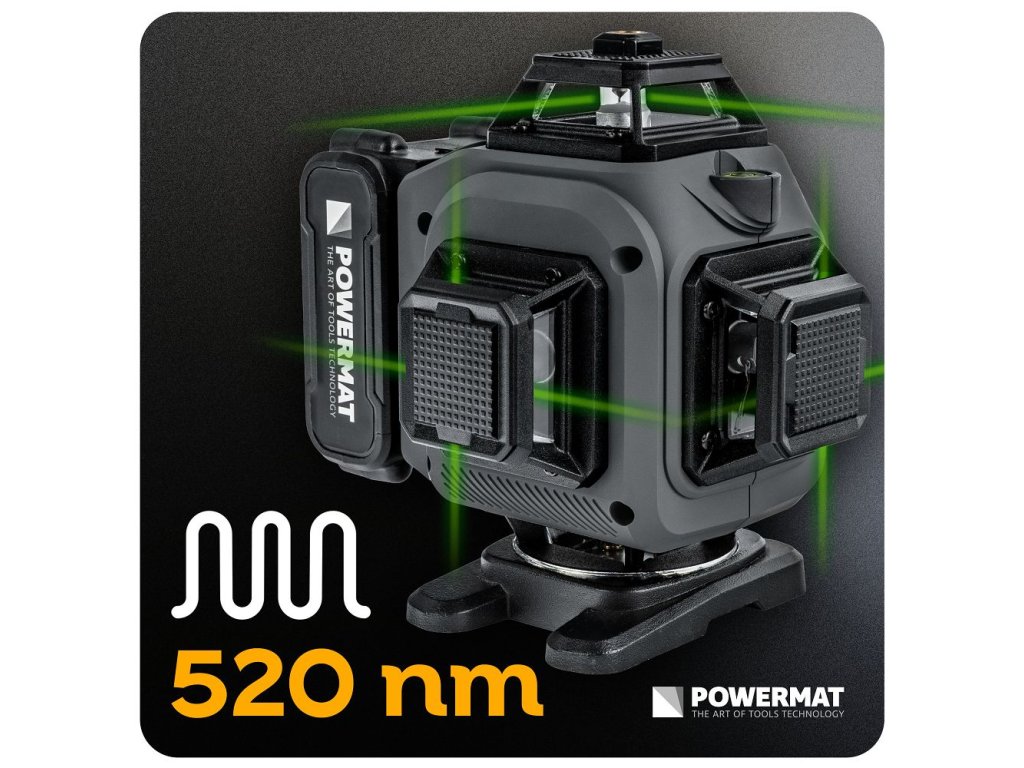 Krížový laser 4D 360° (16 riadkov) POWERMAT PM-PLK-4DM3 - zelený lúč