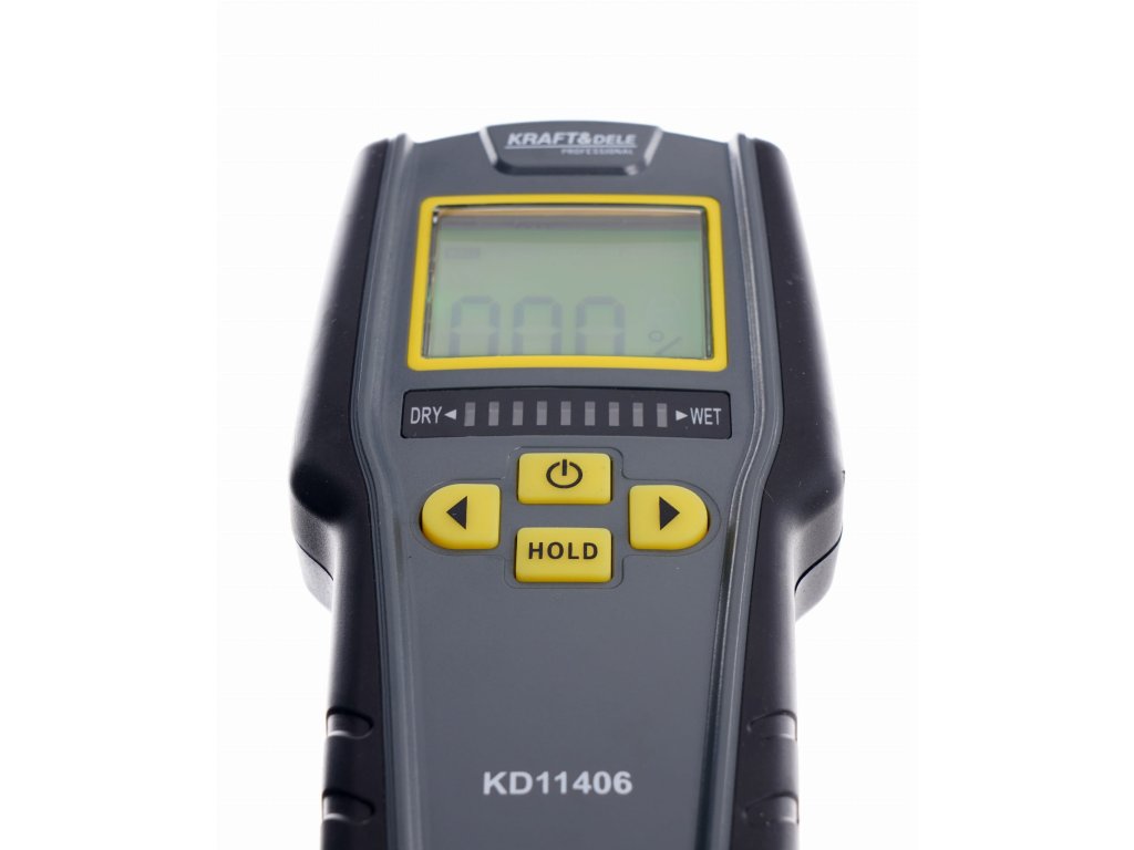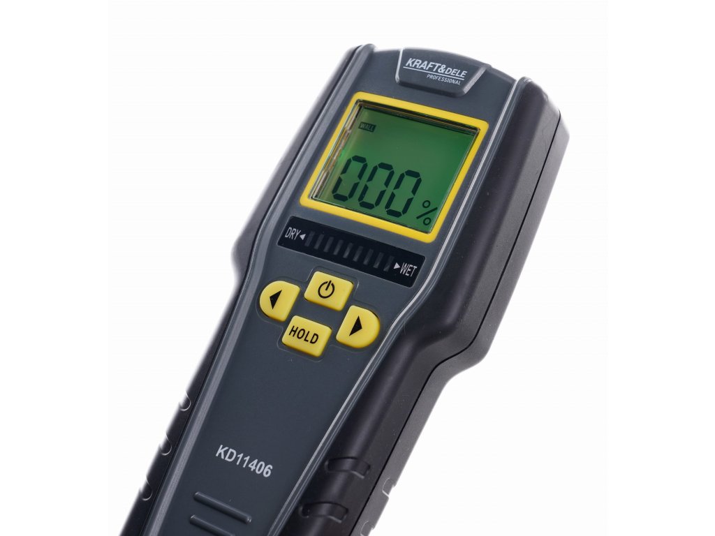 Merač vlhkosti KD11406 je ako superhrdina medzi meračmi! Vďakaneinvazívna technológia dokáže zistiť vlhkosť materiálu bez toho, aby ho poškodil. Ideálne na drevo, murivo alebo papier. Okrem toho ponúkaautomatická kalibrácia,ukladanie údajov aalarm pre vašu informáciu. Šetrí batériuautomatické vypnutie a môže merať do hĺbky20 mm.
