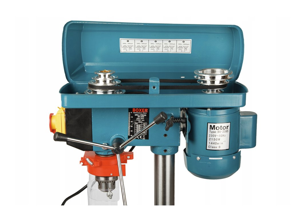 Profesionálna stolová vŕtačka s výkonom 2350 W na presné vŕtanie do kovu, dreva, plastu a hliníka. Masívny oceľový stĺp zaisťuje stabilitu, zatiaľ čo 5-stupňová regulácia otáčok umožňuje prispôsobiť sa akémukoľvek materiálu. Ideálne náradie predielne, servisy, remeselníci a domáci majstri.