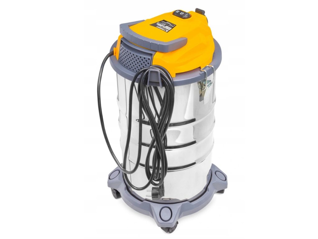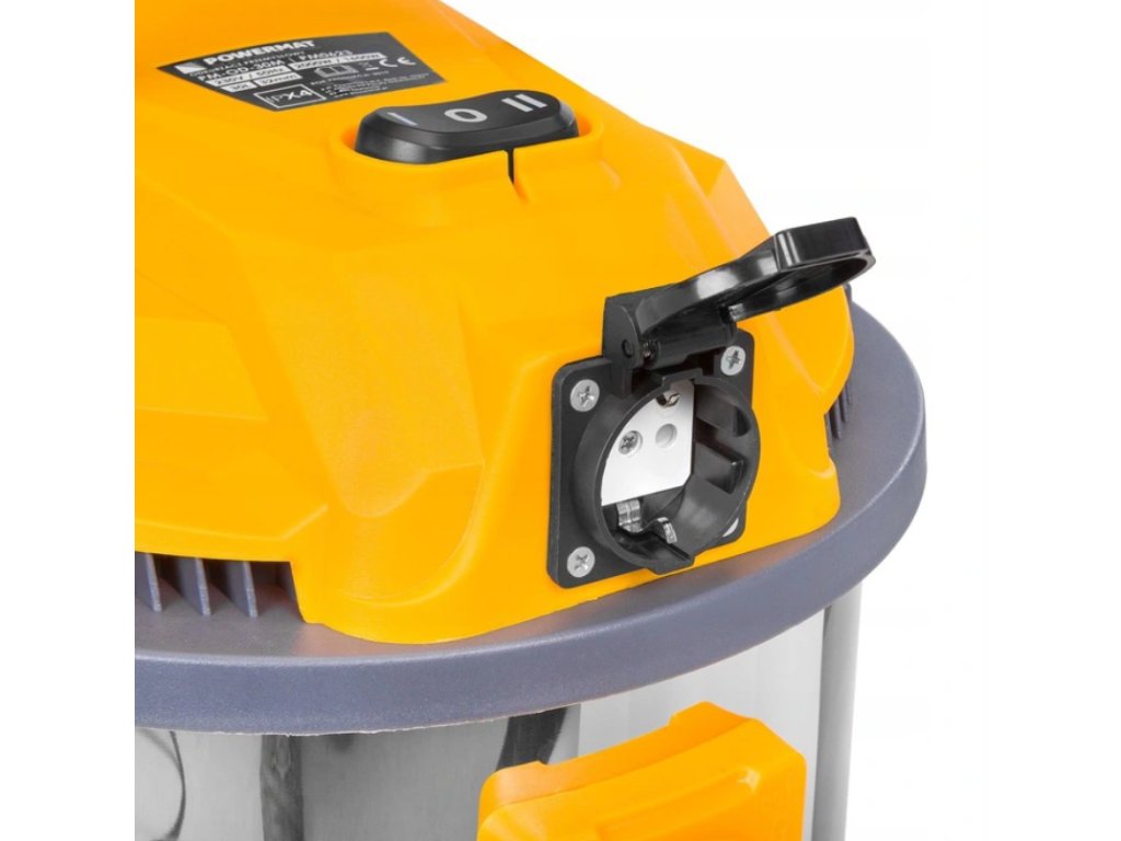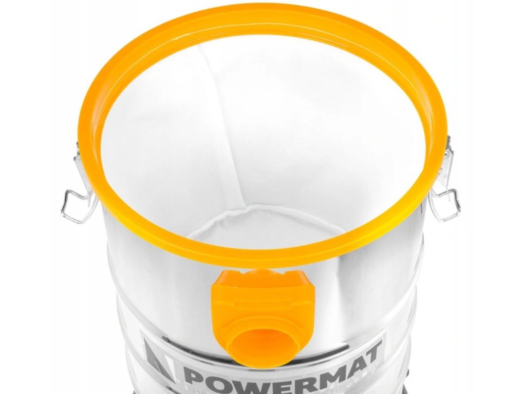 Priemyselný vysávač Powermat PM-OD-30M je ideálny na čistenie mokrých a suchých povrchov. Dvojitý motor s ventilátorom. Systém prúdenia vzduchu v zbernej nádobe zabraňuje upchávaniu filtračných otvorov. Odolná nádrž z nehrdzavejúcej ocele a zásuvka na elektrické náradie. Môže sa používať v spojení s brúskou na sadrokartón, brúskou na drevo a iným elektrickým náradím s odsávaním prachu. Ľahko zbiera všetky typy nečistôt, mokré aj suché. Kolieska na základni zariadenia uľahčujú premiestňovanie zariadenia počas prevádzky.