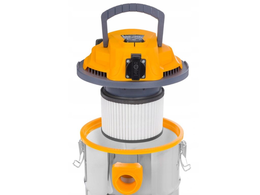 Priemyselný vysávač Powermat PM-OD-30M je ideálny na čistenie mokrých a suchých povrchov... Motor s dvojitým ventilátorom. Systém prúdenia vzduchu v zbernej nádobe zabraňuje upchatiu filtračných otvorov.