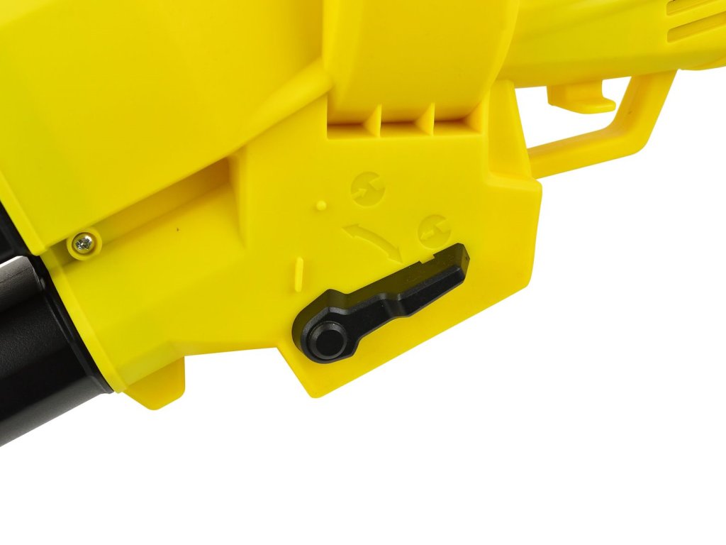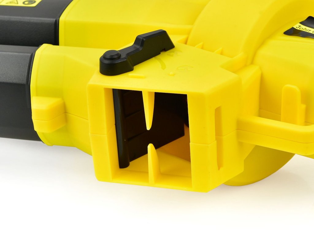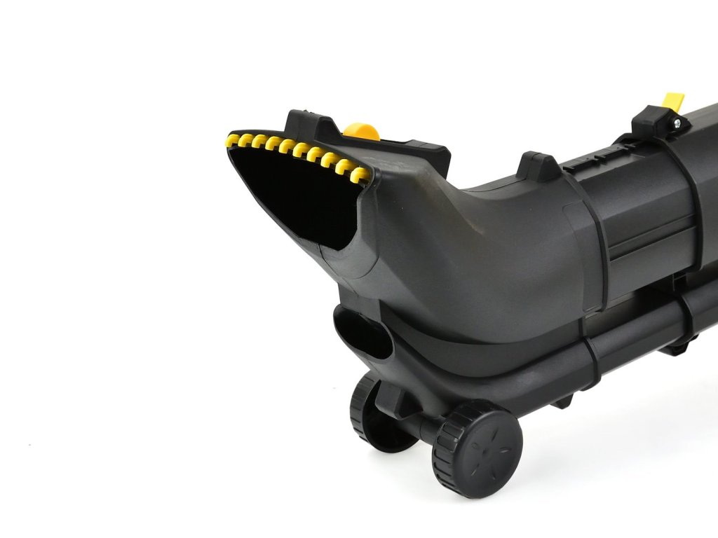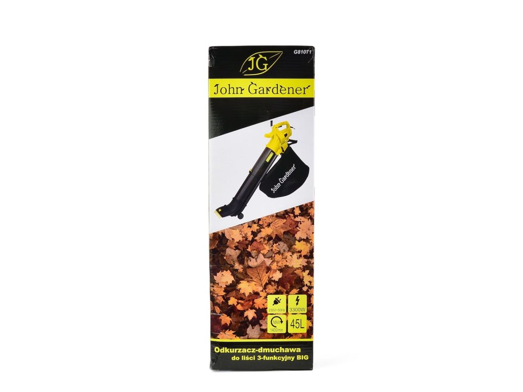Vysávač s drvičom / fúkačom lístia John Gardener. Zariadenie je vybavené elektromotorom s výkonom 3300 W s možnosťou regulácie otáčok v rozsahu 8000-14000 ot/min.