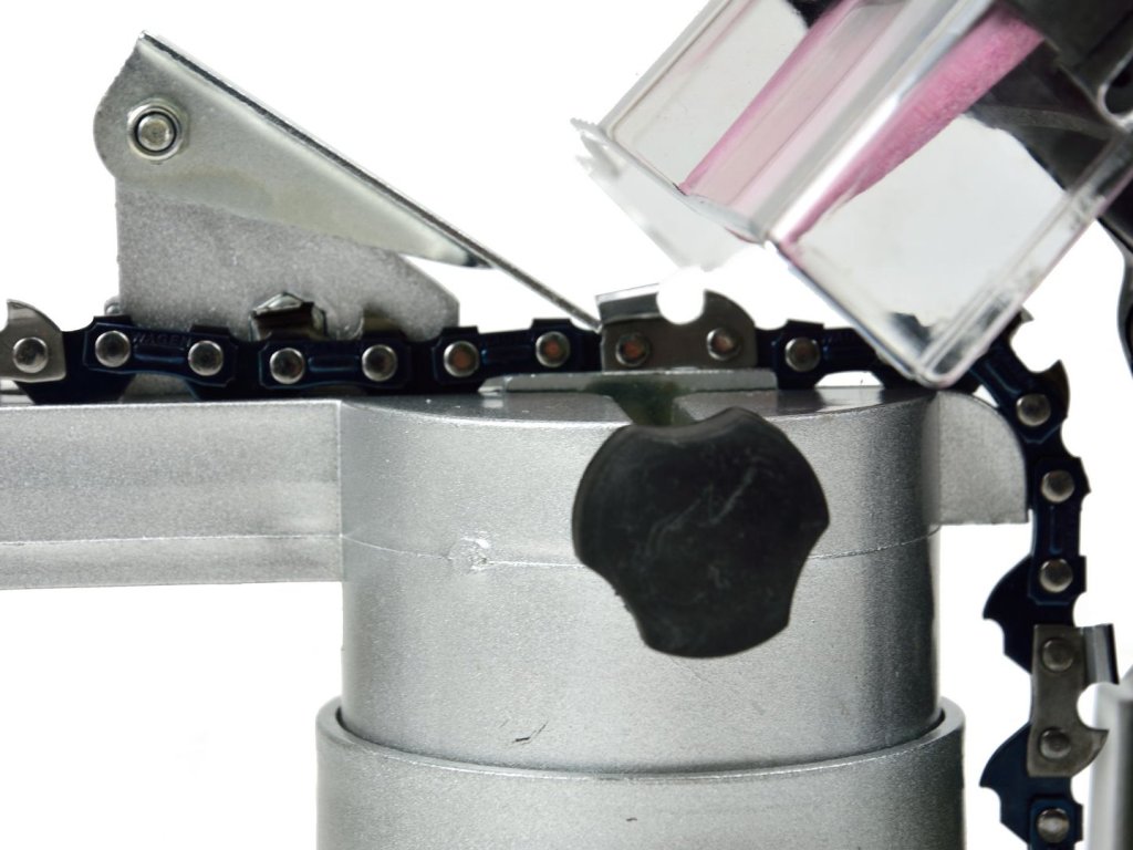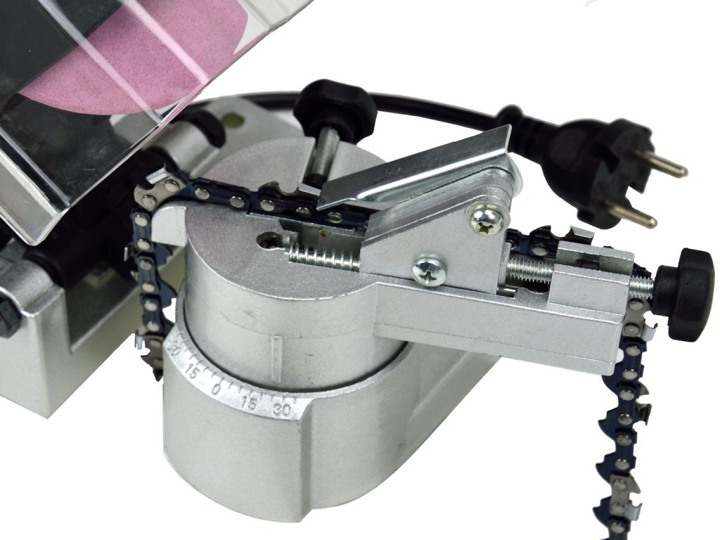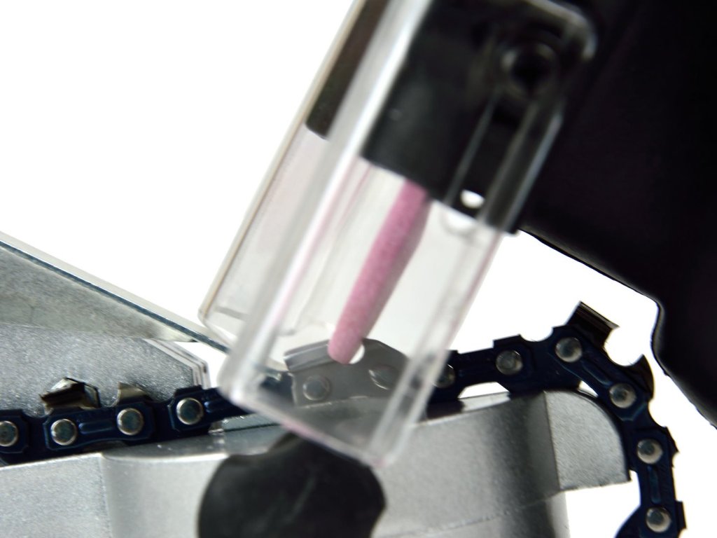 Brúska určená na brúsenie/ostrenie reťazí elektrických a benzínových píl. Príkon 220 W a otáčky 7500 ot/min umožňujú rýchlo dosiahnuť požadovaný výsledok. Prístroj má zabudovaný napínač, ktorý v kombinácii s prehľadnou stupnicou ostrenia zabezpečuje veľmi presné..