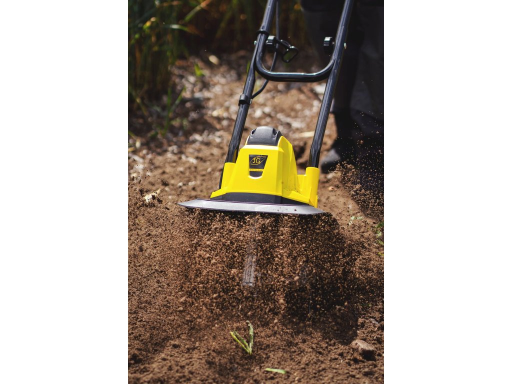 Kultivátor výrazne uľahčuje prácu v záhrade. Príprava pôdy, napríklad pre zeleninovú záhradu, je tak rýchlejšia a jednoduchšia.32 mm široký hnací valec so 4 čepeľamikyprí, drví a mieša pôdu. Kovový kryt chráni obsluhu kultivátora pred odletujúcimi kameňmi. Vysoká mobilita vďaka 2 kolesám. S kultivátoromJohn Gardener práca v záhrade je čistým potešením.