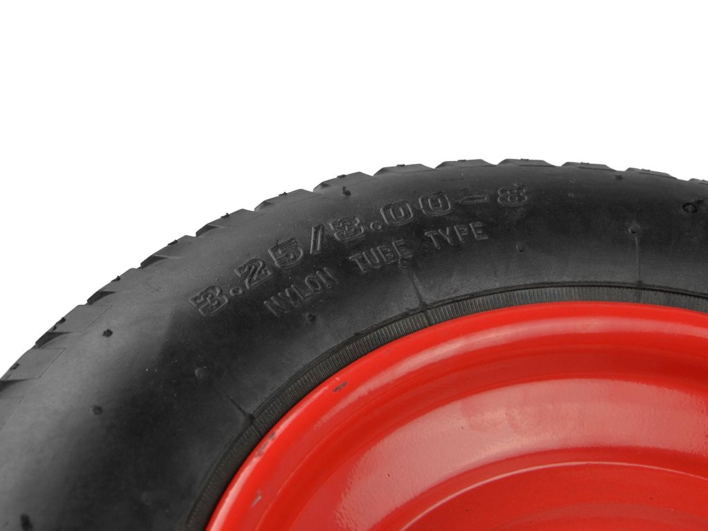 Nafukovacie koleso pre trakař 3,25-8 2PR. Odolný kovový ráfik s práškovou povrchovou úpravou poskytuje zvýšenú stabilitu. Celé koleso je vyrobené z vysoko kvalitných materiálov.