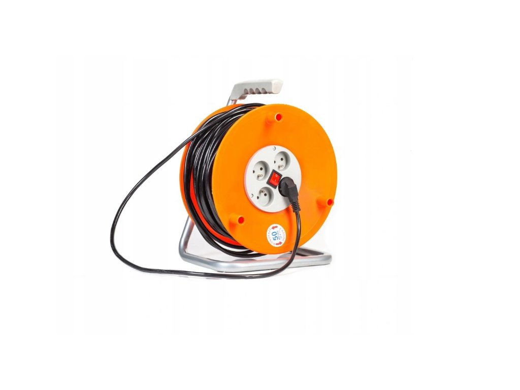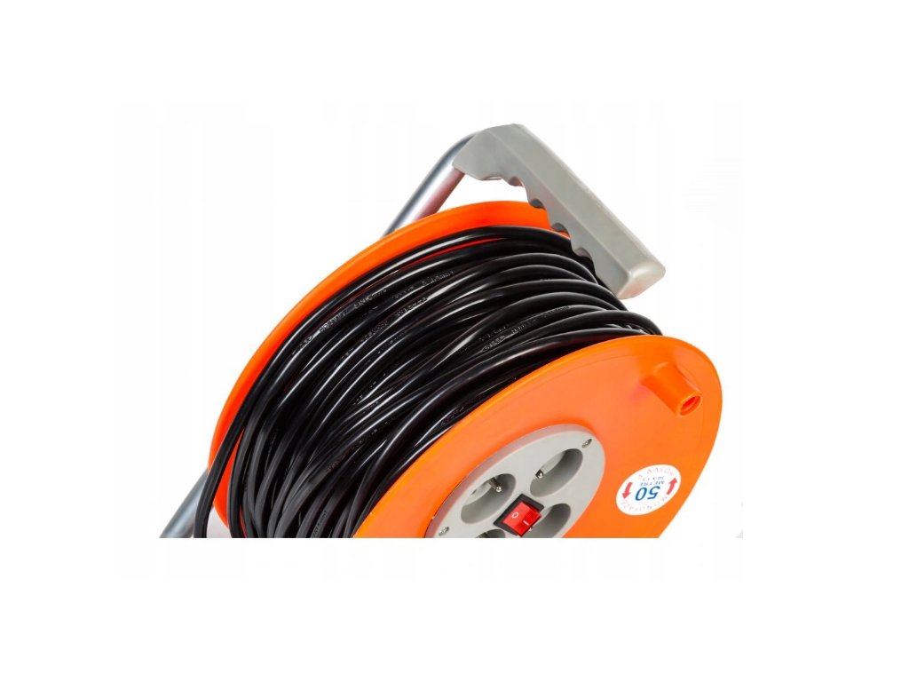 Predlžovací kábel PM-PB-50-3-1,5 od spoločnosti POWERMAT je pevne vyrobený predlžovací kábel. Pružný materiál bubna, kovový rám.