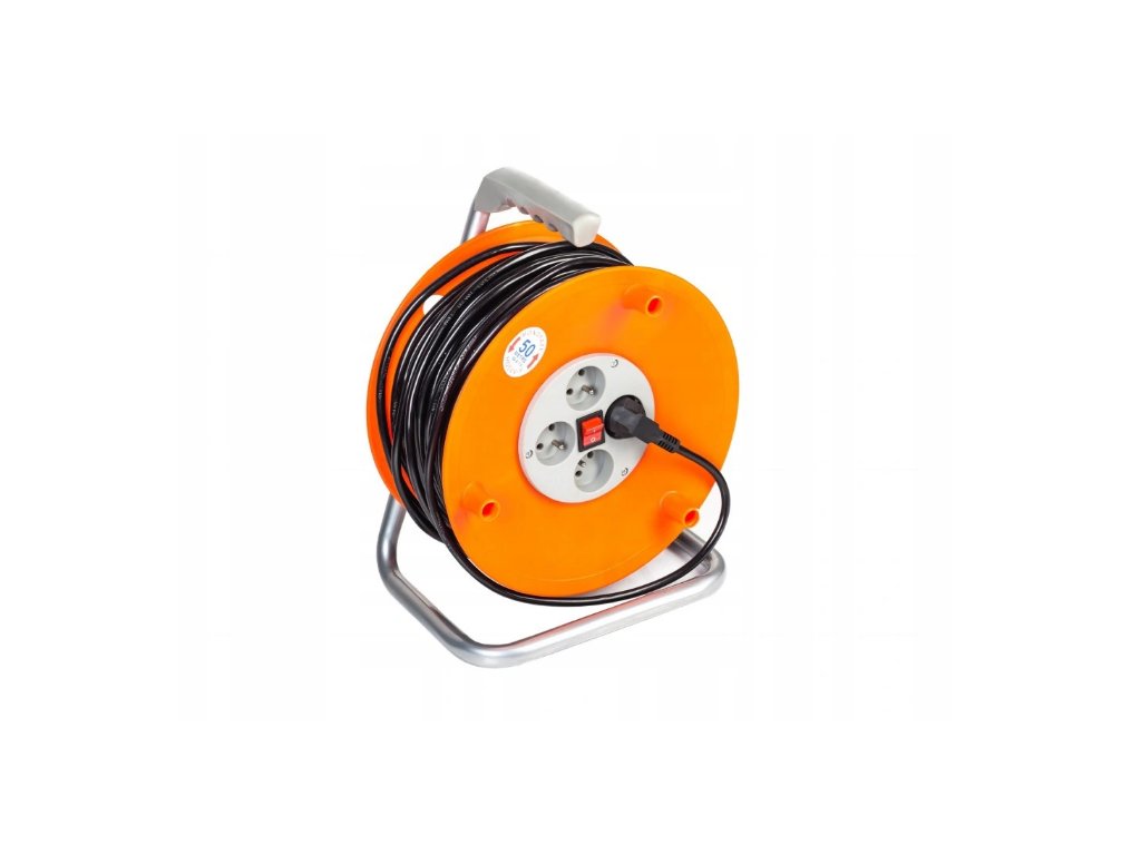 Kovový predlžovací kábel záhradný bubon 50m 3x1,5mm