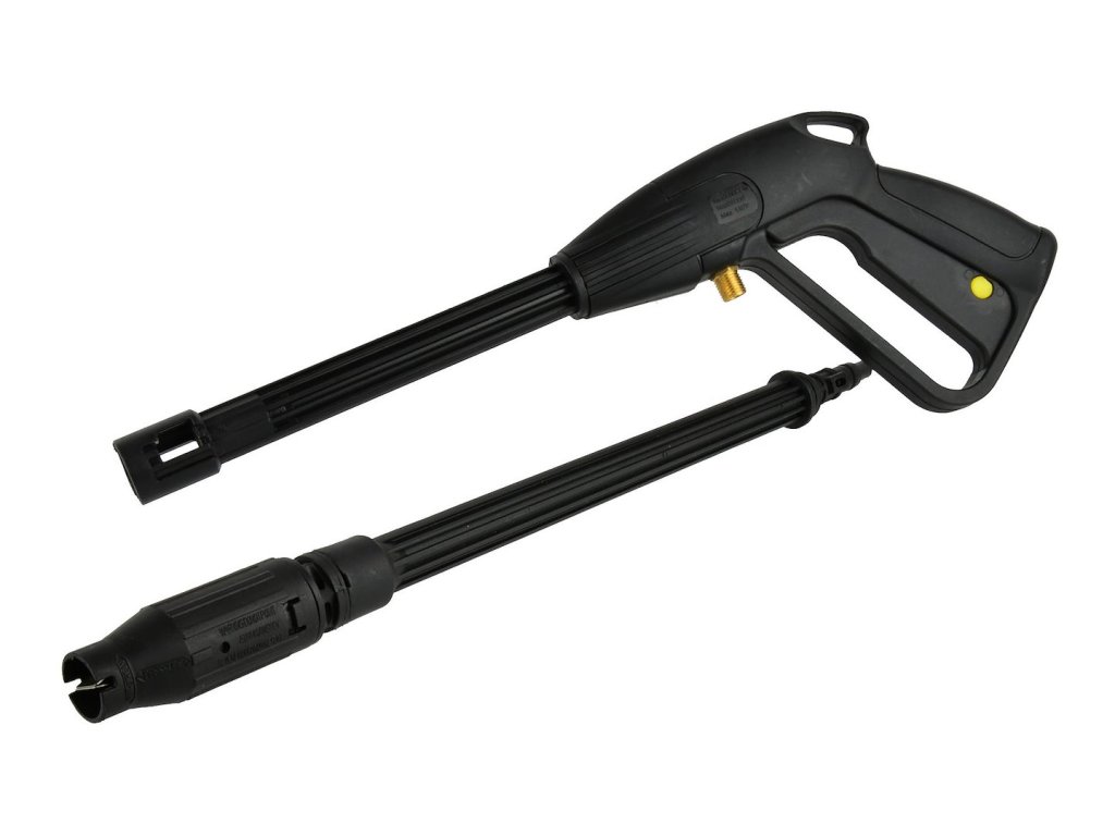 Hadicová pištoľ pre vysokotlakový čistič, vybavená reguláciou šírky prúdu. Vďaka použitiu štandardného závitu (14 mm) je pištoľ vhodná prakticky pre všetky vysokotlakové čističe dostupné na poľskom trhu.