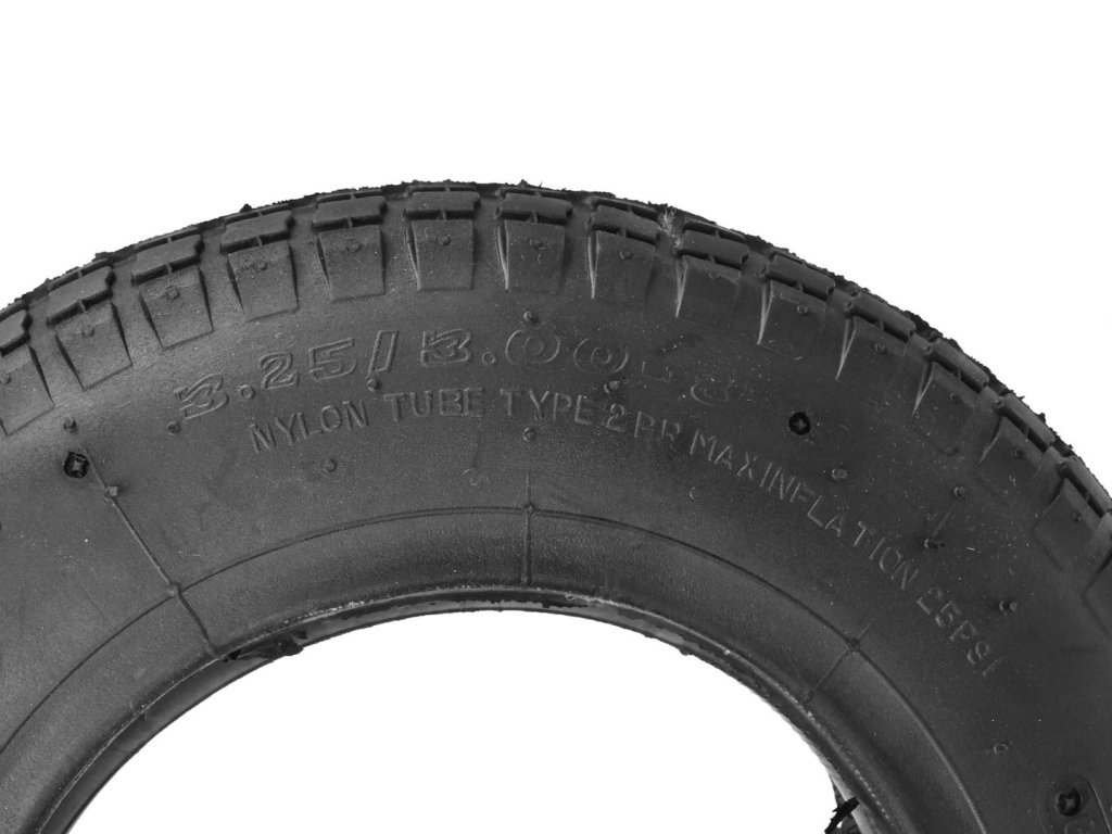 Pneumatika s dušou 3,25 - 8 2pr Vlastnosti produktu: Maximálny tlak v pneumatike: 1,5 mm Vonkajší priemer pneumatiky: 365 mm Šírka pneumatiky: 80 mm Vnútorný priemer pneumatiky: 220 mm Počet vrstiev v pneumatike: 2 Materiál: guma
