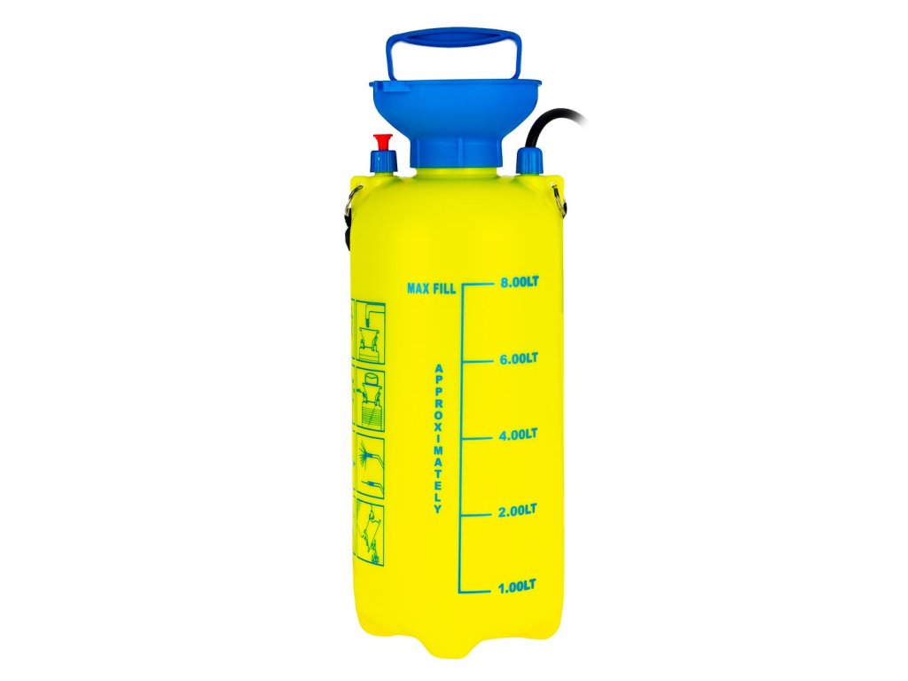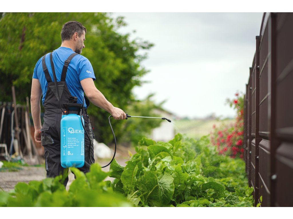 Ručný tlakový postrekovač s objemom 8 l. Postrekovač je vysoko účinný nástroj na ochranu rastlín. Možno ho použiť na prevenciu chorôb rastlín a boj proti škodcom na veľkých plantážach a obilných poliach, v záhradách, na kvetinových záhonoch, ovocných a..
