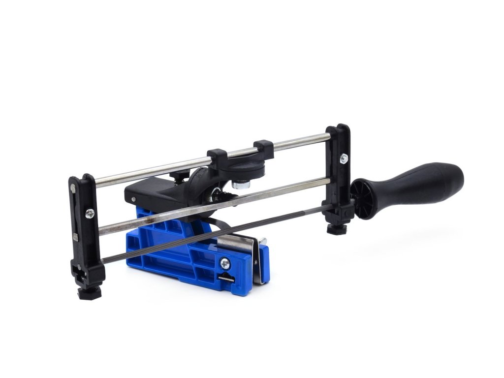 Ručná rámová brúska určujena ostrenie reťazí benzínových a elektrických píl. Nástrojeumožňuje presné ostrenie reťaze pod správnym uhlomzameranie. Brúskasa montuje priamo na vodiacu lištunie je potrebné odstraňovať reťaz.ideálne ako ostriaci systém pre prácu v teréne.