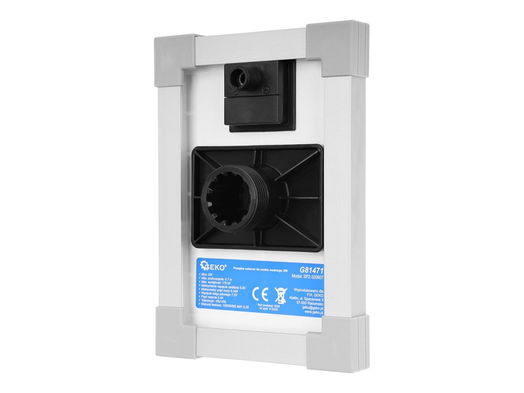 Technické údaje Príkon: 2 W Maximálny zdvih: 0,7 m Maximálny výkon: 170 l/h Maximálne napájacie napätie: 5,8 V Maximálny prúd: 0,34 A Napätie naprázdno: 7,2 V Skratový prúd: 0,4 A Tolerancia: -5 %/+5
