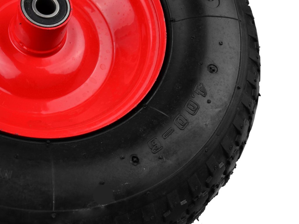 Koleso na nafukovací vozík 2PR s maximálnou nosnosťou do 90 kg. Odolný kovový ráfik s práškovou povrchovou úpravou na zvýšenie stability. Celé je vyrobené z vysokokvalitných materiálov.