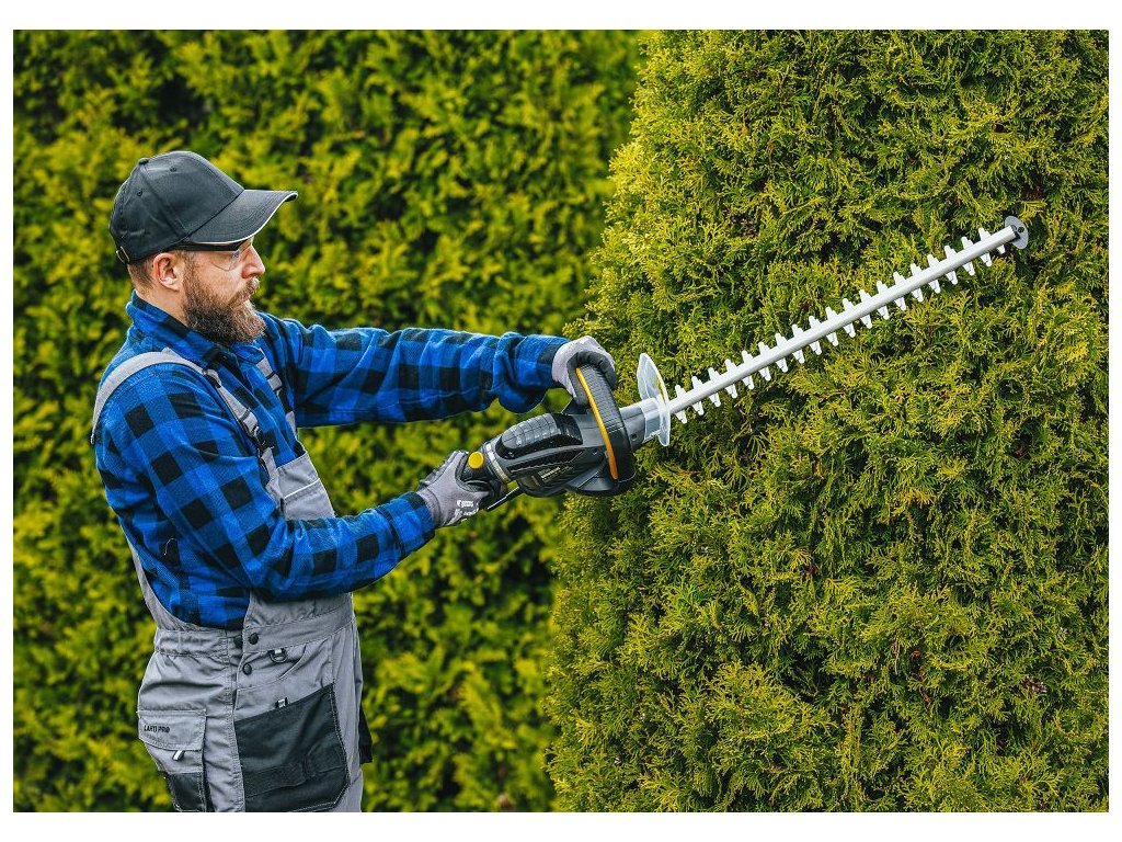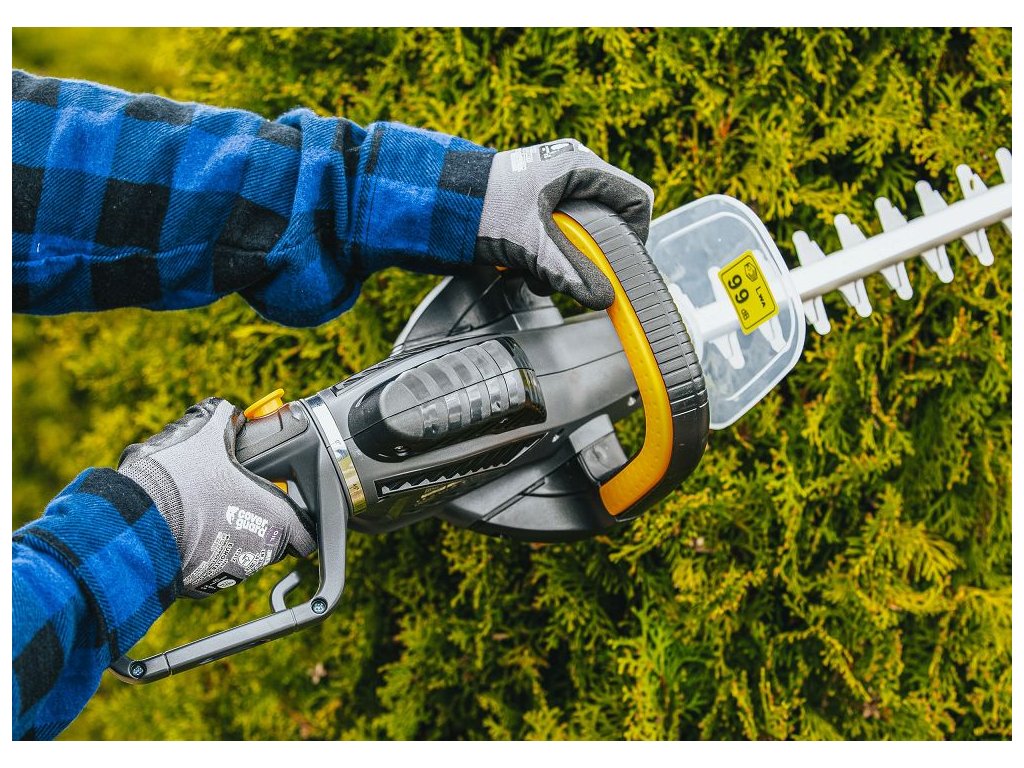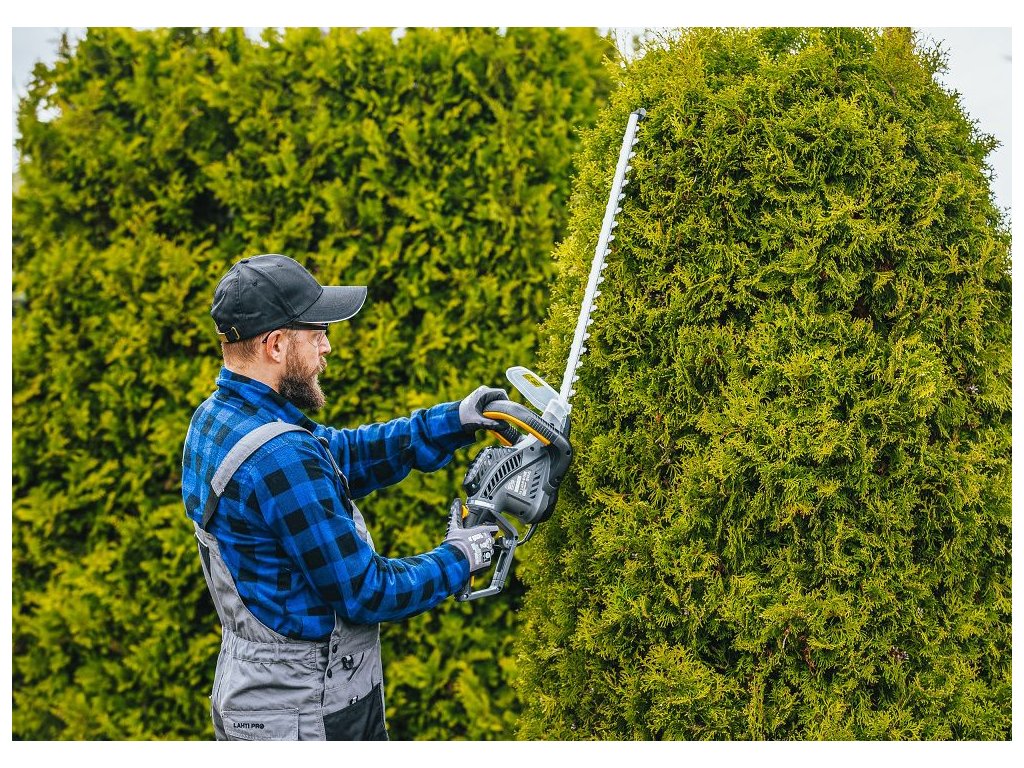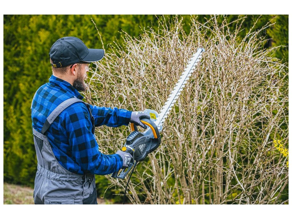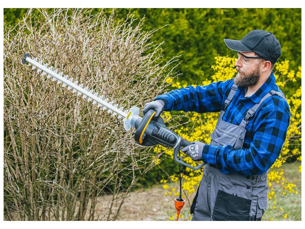 Táto konštrukcia zaručuje stabilné a pohodlné používanie pri strihaní živých plotov a tvarovaní kríkov.
