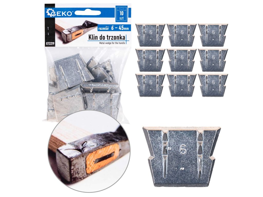 Kovový klin na rukoväť vyrobený z vysokokvalitného odliatku. Má úchyty, ktoré zaručujú bezpečné uchopenie rukoväte. Používa sa na klinovanie sekier a kladív.