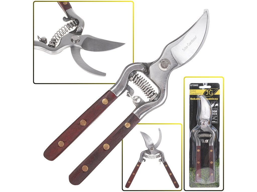 Záhradné nožnice 200 mm, drevené rukoväte