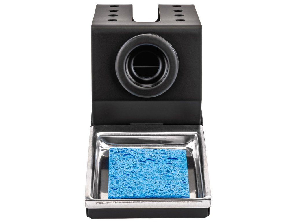 Spájkovacia stanica, spájkovačka, stojan, čistiaca špongia, návod na použitie a originálny obal.