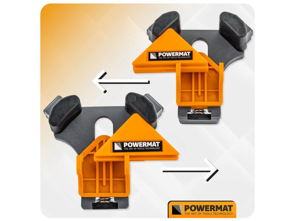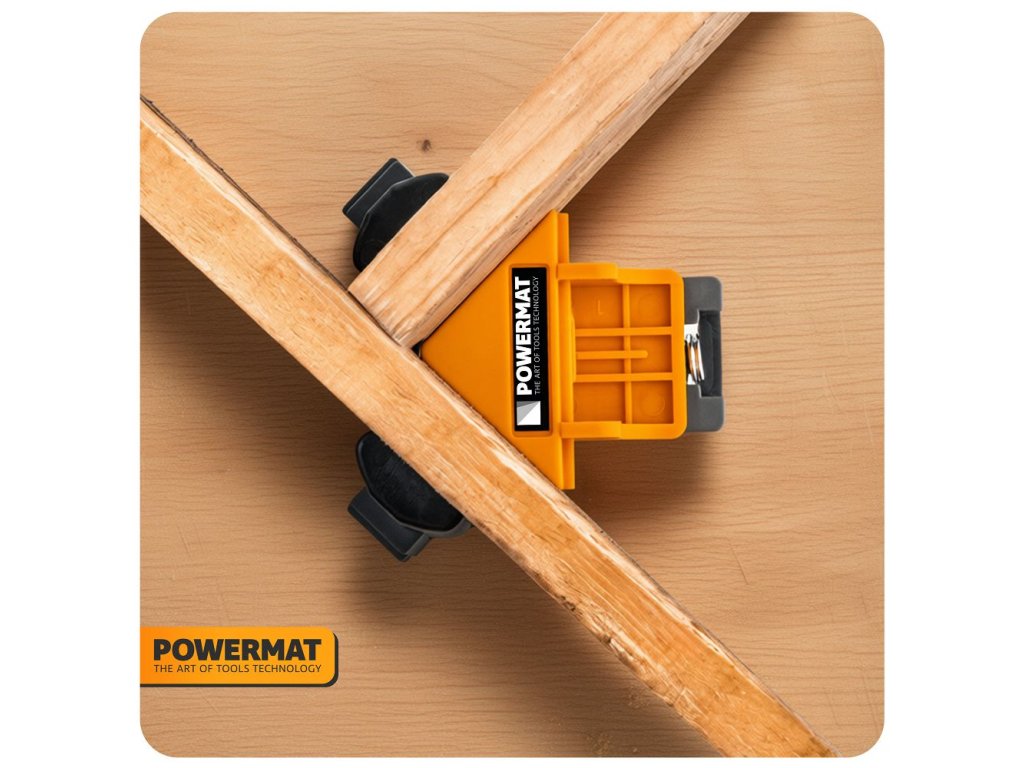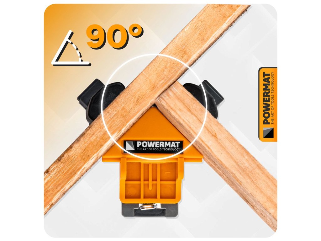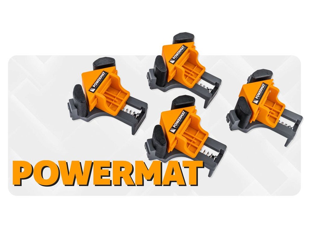 Rohové svorky PowerMat PM-SNK-522T sú určené na presné spájanie materiálov pod uhlom 90°. Ideálne na lepenie, skrutkovanie alebo zváranie rámov, krabíc, skríň a iných konštrukcií. Vďaka jednoduchému upínaciemu mechanizmu a súprave štyroch kusov umožňujú pevné a stabilné upevnenie materiálu zo všetkých strán.